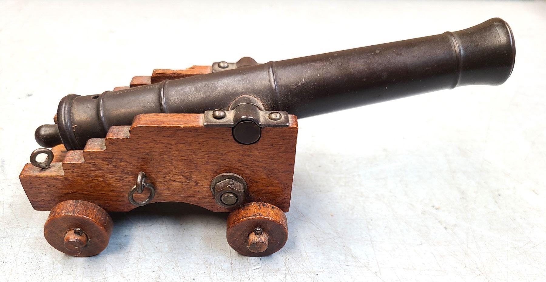 Canon - Fireable Small Canon Steel on Wood Base c/w Fuse