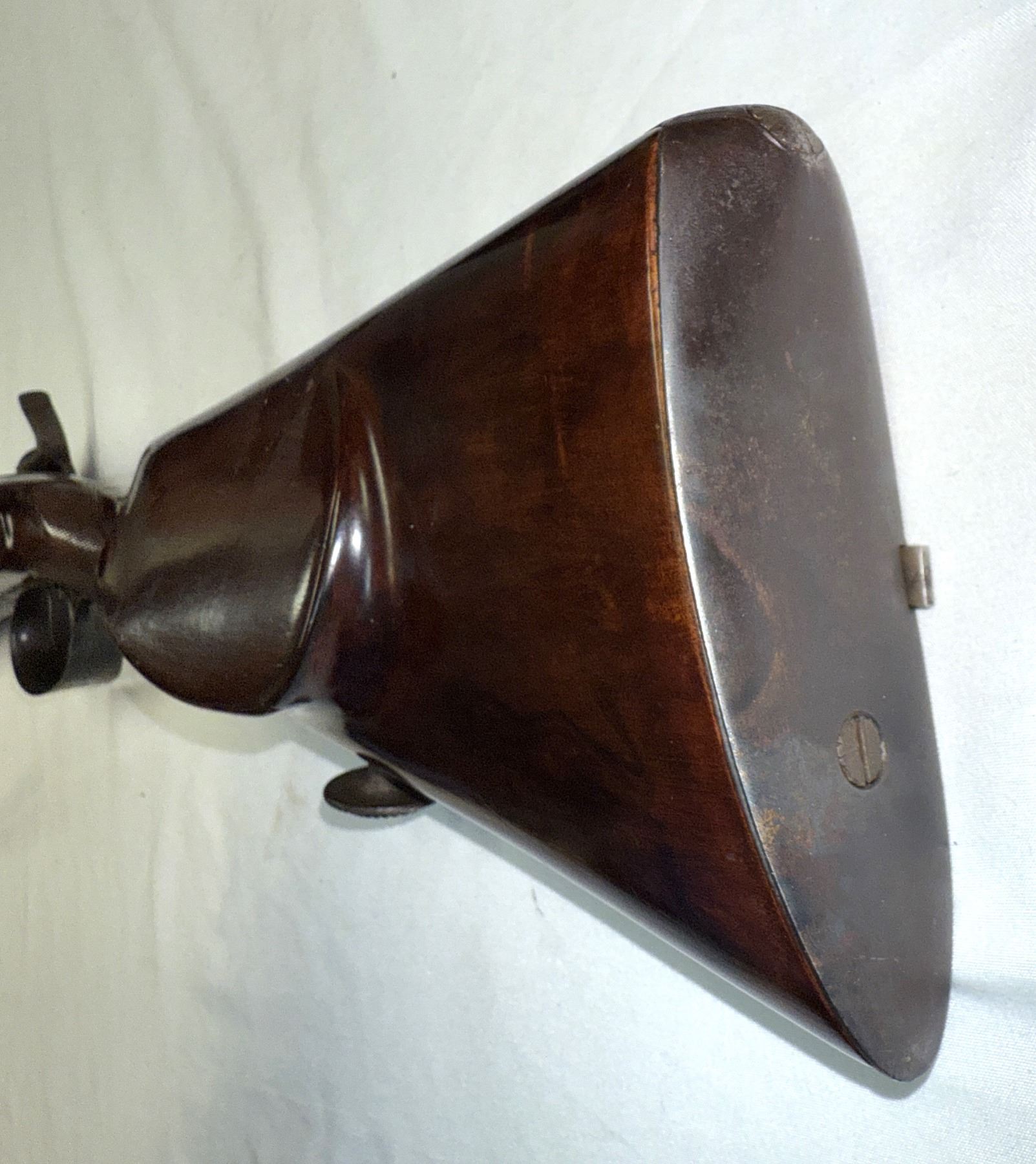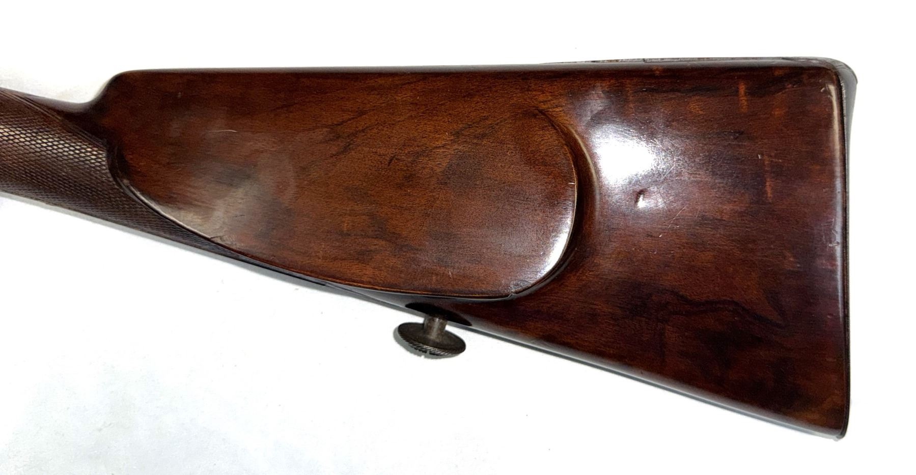The high grade walnut stock with checkered grip is free from any cracks and still
