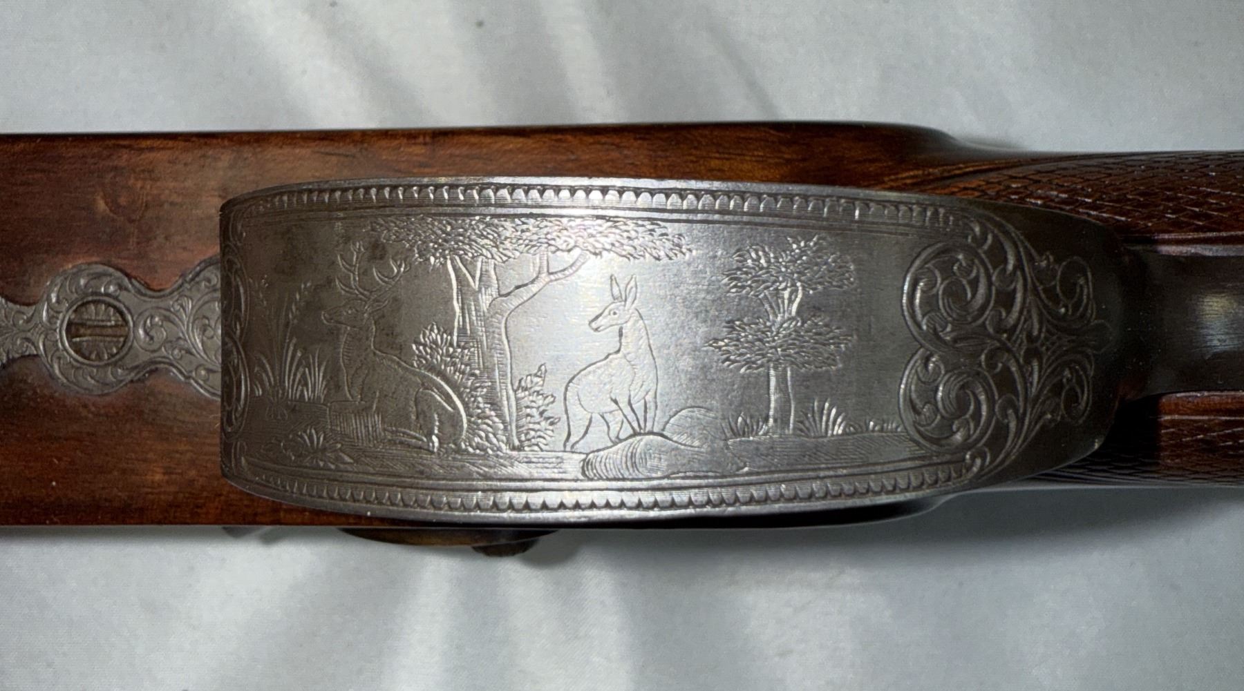 engraved in detail - Trigger guard depicts a Deer standing in forest.