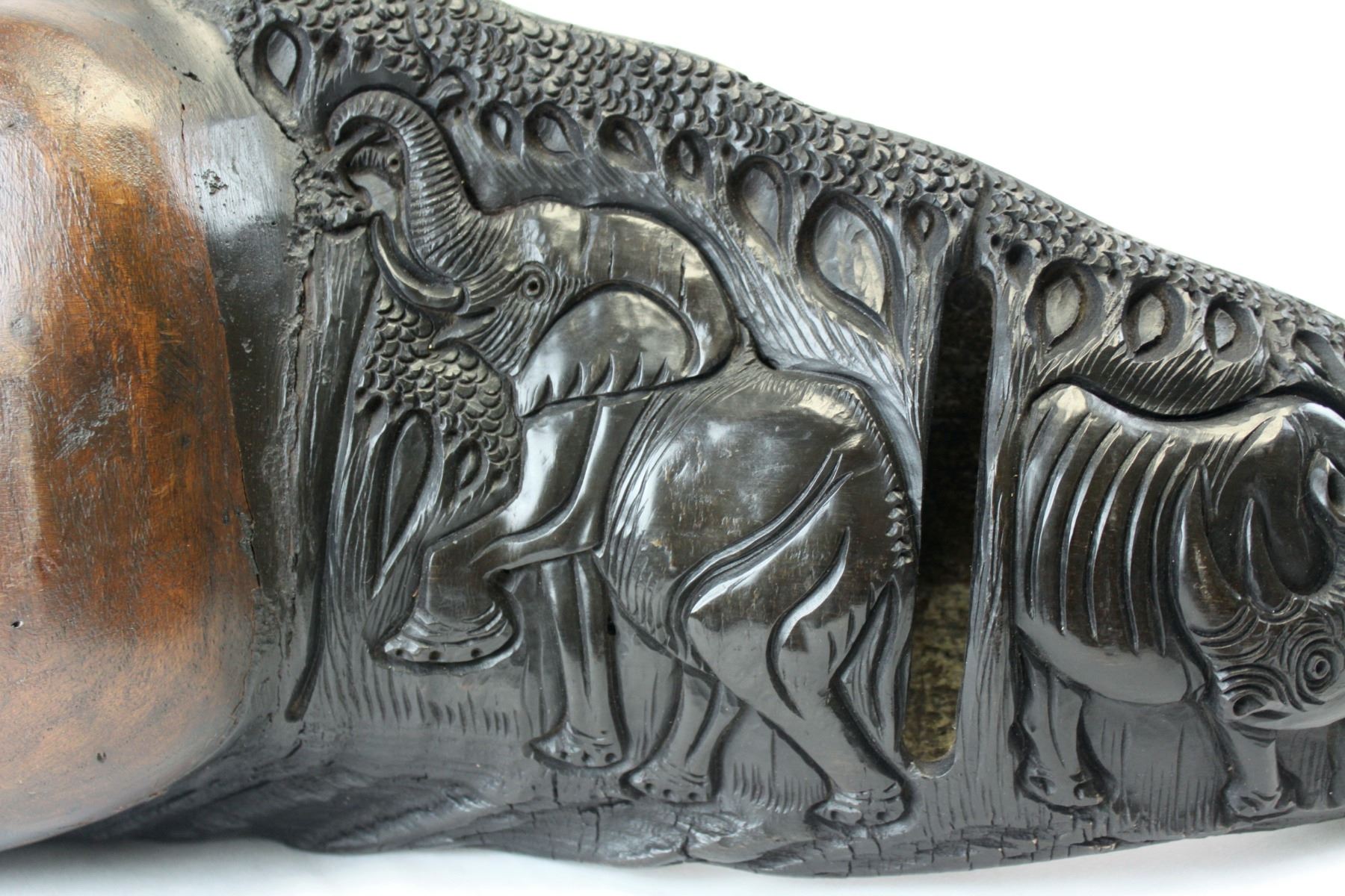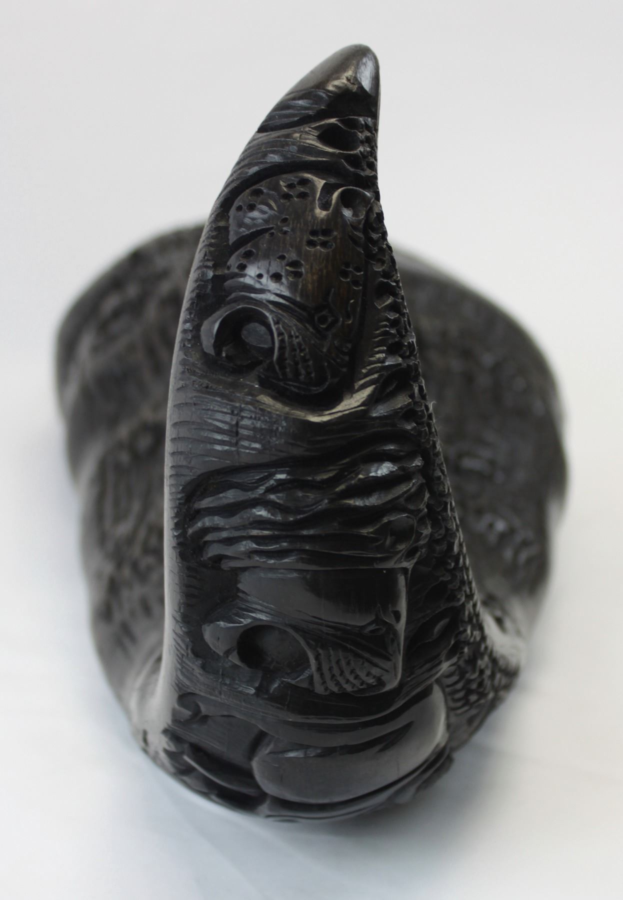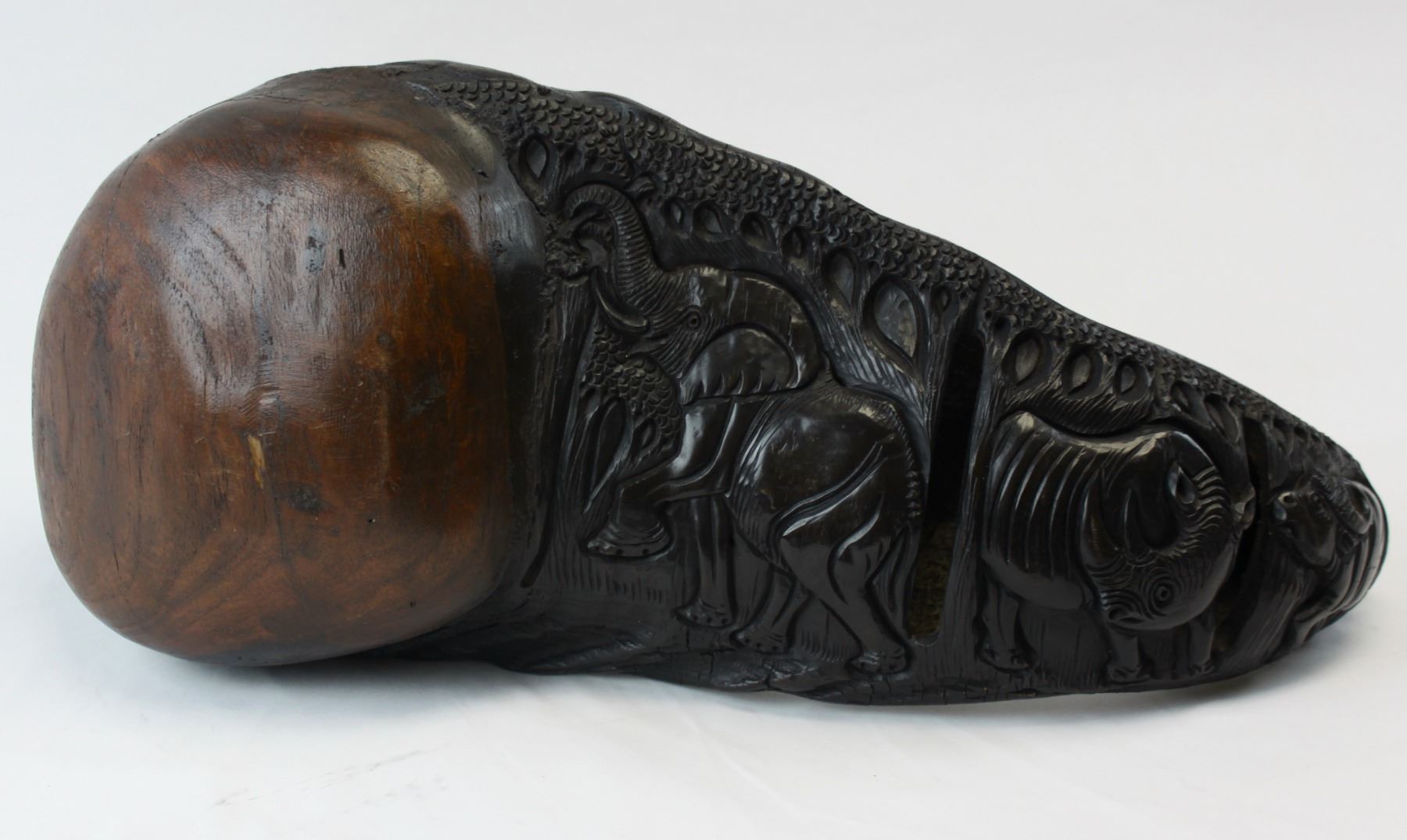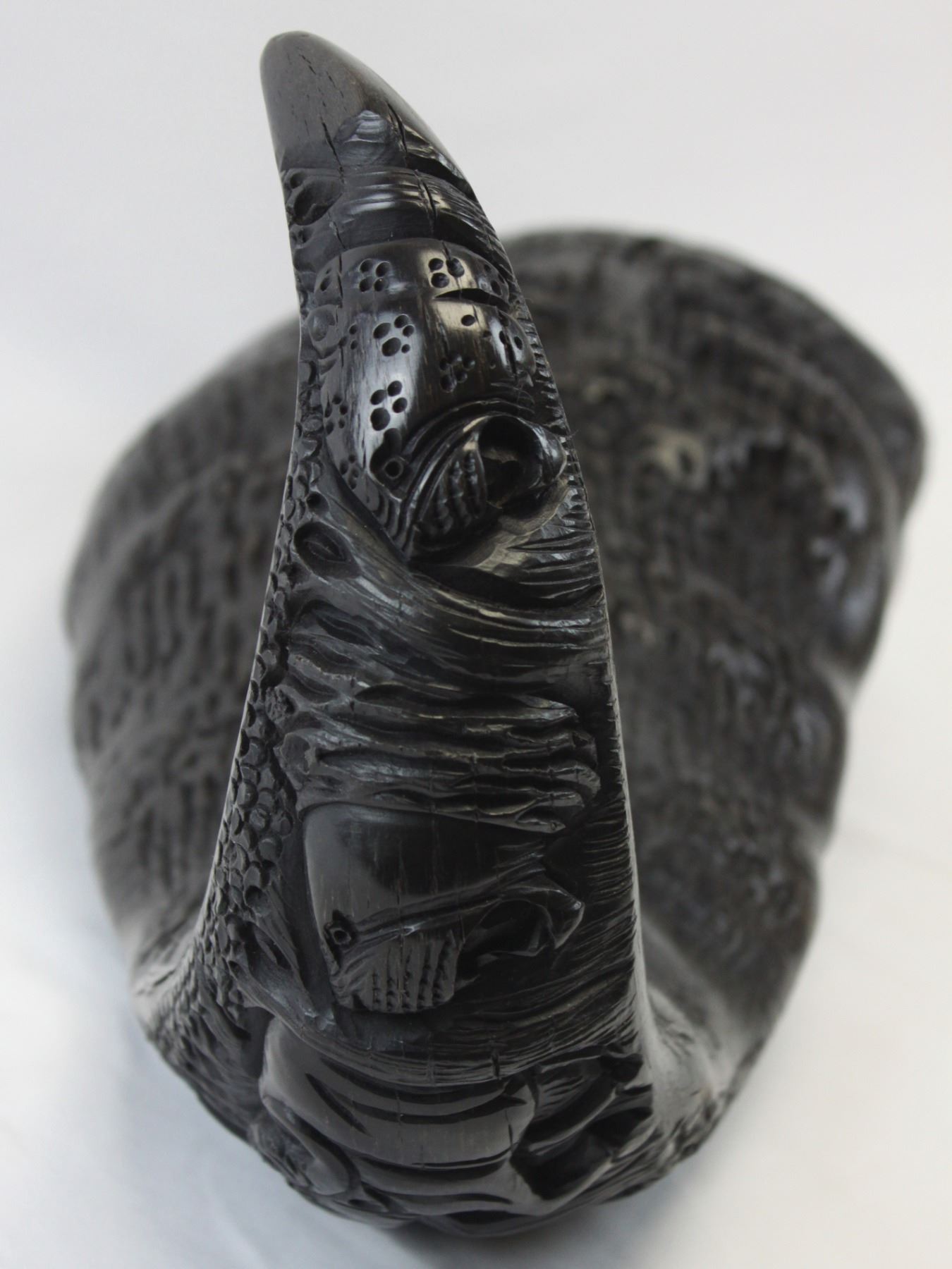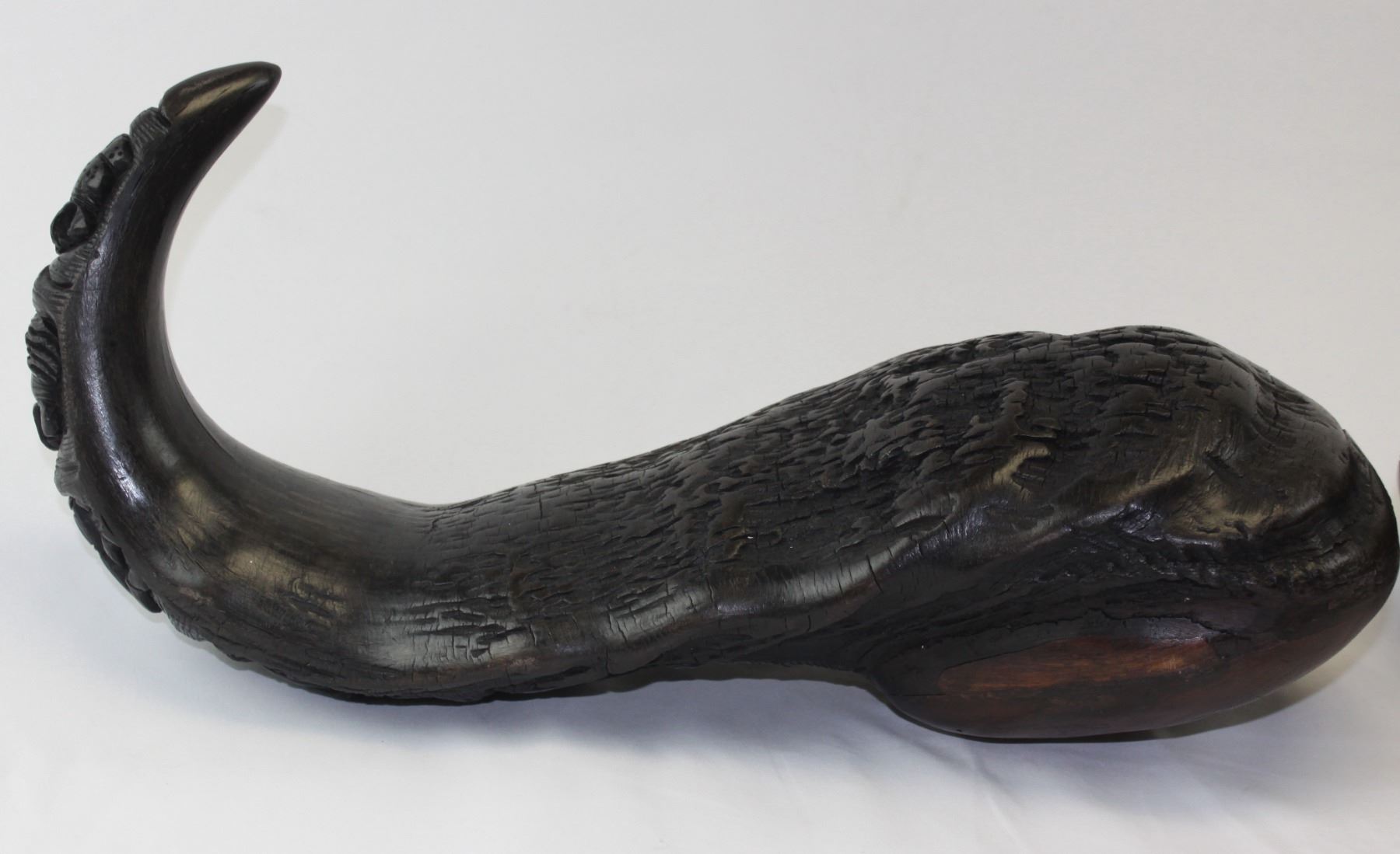 This is a matched pair of hand-carved Cape buffalo horns. You never see Cape buffalo horns used in artwork or crafts because they are so expensive and dangerous to hunt, and a matched pair is rarer still. These horns have been meticulously hand-carved by a tribal craftsman in Africa. The polished carvings depict the African “Big 5” on each of the horns. The wooden end caps, made from local African hardwood, have also been carefully formed and hand-fitted by the craftsman. These horns would measure 40" on a cape buffalo. These unique, one-of-a-kind horns will look great as a fascinating conversation piece in any home, office or trophy room. These carved horns are such an extremely rare find that they aren’t even found at the legendary SCI annual convention. You can search and search, but there are only two places you can find these – here at our auction, or somewhere in a small un-named village in the heart of the Dark Continent. Considering the cost of a Cape buffalo hunt, the days of meticulous work by a tribal craftsman, and the rarity of such a find, these horns will be an absolute bargain for the winner of this auction. NOTE: The winner should add these to their home insurance policy.