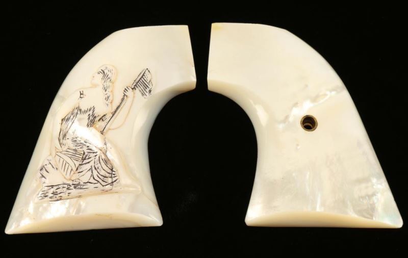 for Colt Single Action Army carved with the image of Lady Liberty.