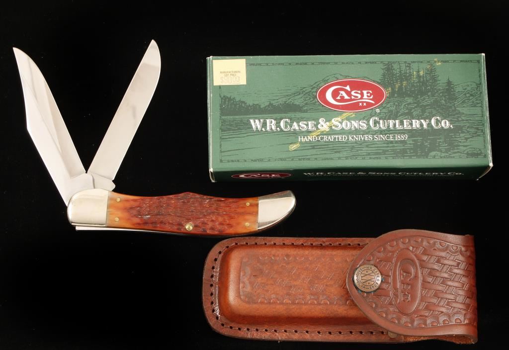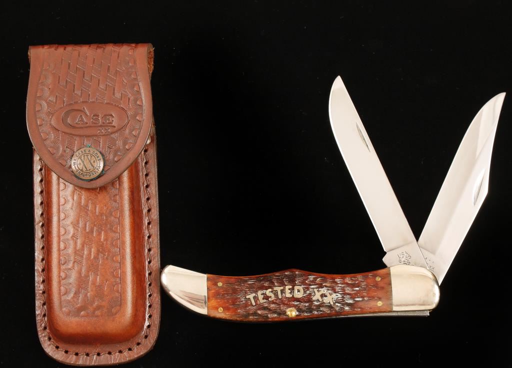 Wood handle which is inlaid with 'Tested XX'. 6265SS, includes leather sheath in original box. Retail price $90.