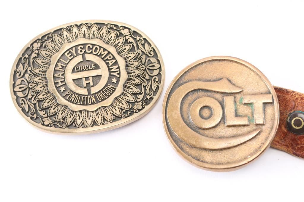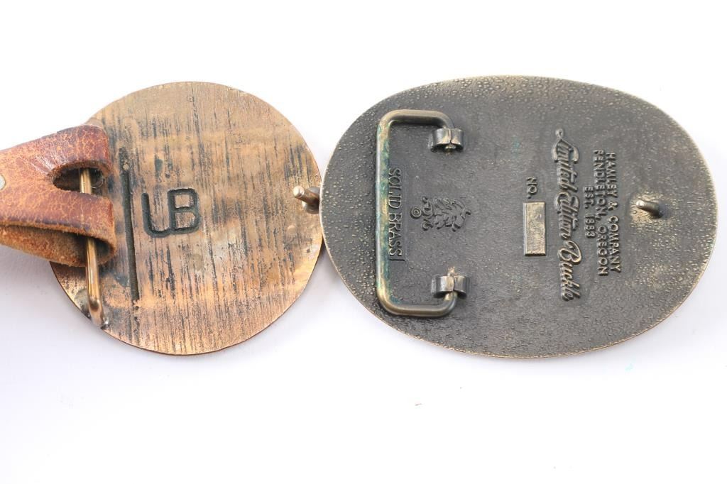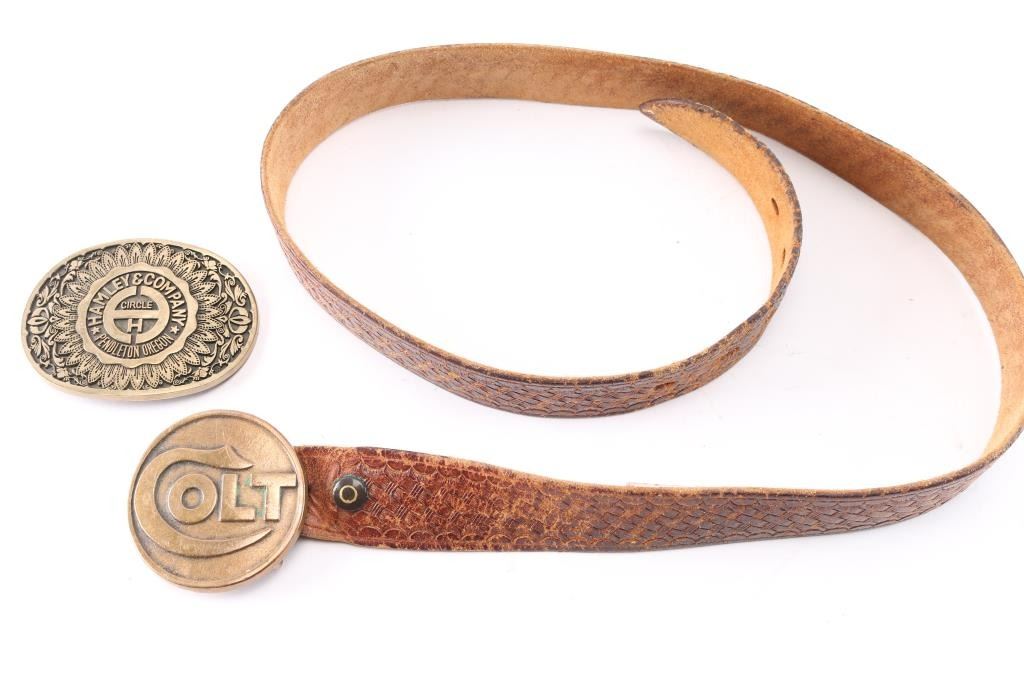 On Binchi belt. Size 38. Most frequently worn by John Kopec for about 50 years. Along with Hamley Co, Oregon cast brass buckle.