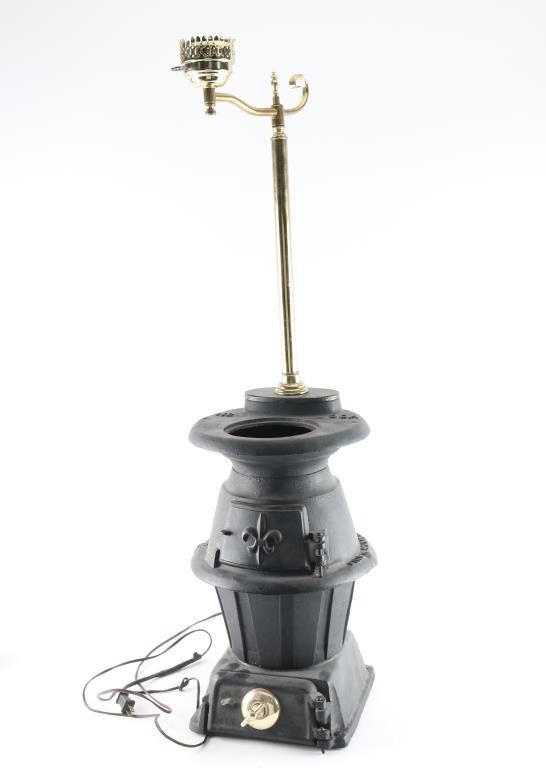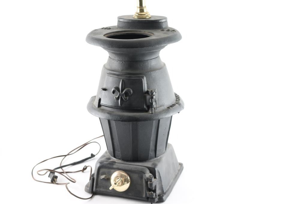 Salesman sample Cast Iron Stove made by King Stove & Range Company, #30A, made in Sheffield, Alabama has been converted to lamp. Approximately 20" body x 40 1/2" overall (lamp section included). Great for western decor or cabin. Great decor for western