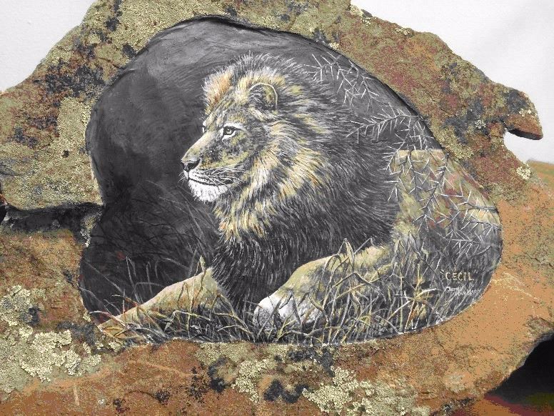 Betty Henderson has donated an acrylic on rock of “Cecil the Lion” Value: $600.00