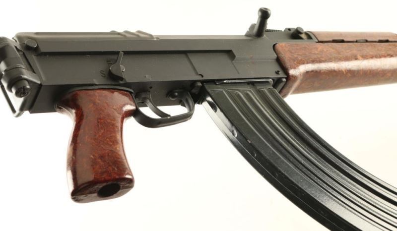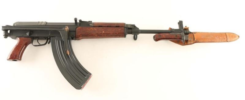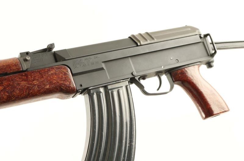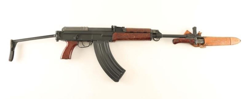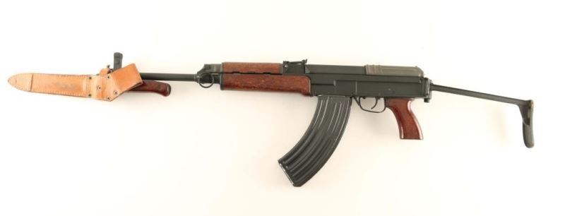 'Paratrooper' American made semi-automatic copy of the Czech military VZ58 rifle chambered in 7.62x39mm. Features a matte black finish, 16.25" barrel with slant muzzle break, shrouded post front sight, tangent rear sight graduated to 800 meters, attached bayonet with sheath, milled receiver, manual safety, smooth trigger, 30 round magazine, right side folding metal stock and wood impregnated plastic handguard, forend & pistol grip. Rifle exhibits approximately 96% of it's original finish showing light edge wear and some heavy rust on the butt. Action performs well, bore is excellent and the composite stocks are very good. Condition is NRA excellent. ***Modern Firearm***