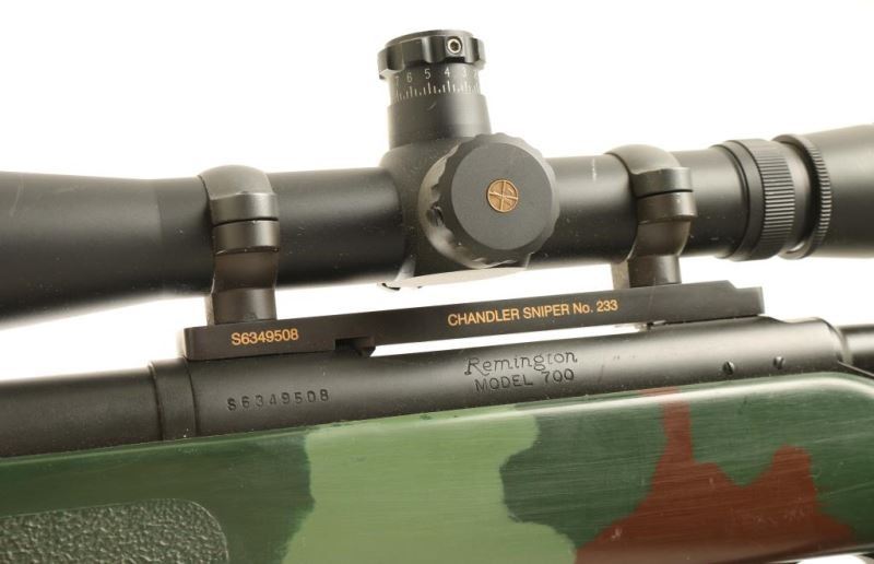Chandler Sniper M40 Long Range Precision. Barrel length: 30” with integral muzzle break. Glass bedded in a fully adjustable McMillian A5 style stock. Remington 700 Action, the Chandler Sniper Rifle also incorporates a, Hart barrel, high quality Leupold Mark 4 LR/T 3.5-10x40mm Mil dot tactical scope with Mil-dot reticle, Iron Brigade Armory one-piece scope mount, and a Badger Ordnance M5 steel one-piece steel trigger guard. All metal parts are finished with our proprietary polymer-resin based Manowar Finish. *Modern Firearm*