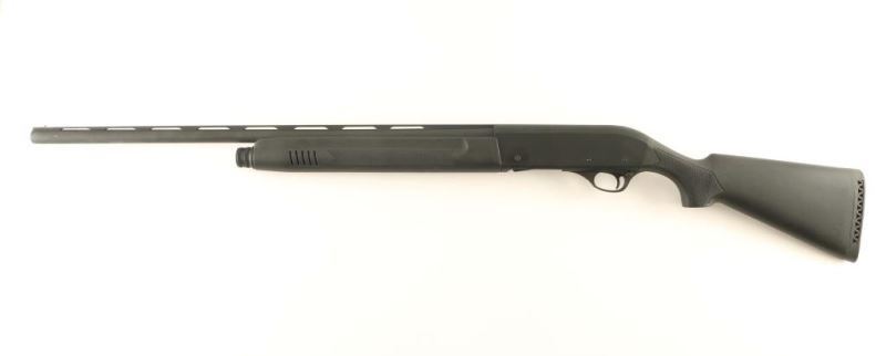 Turkish made gas-operated semi automatic shotgun chambered for 3" 20 gauge shells. Imported by KBI of Harrisburg, PA with import stamp on the left side of the barrel. Features a matte black finish, 26" vent ribbed barrel with removable full choke, brass bead front sight, 5 round tube magazine, smooth trigger, push button safety, smooth charging handle, checkered black synthetic forend and pistol grip shoulder stock with factory recoil pad. Includes the original factory cardboard box. Shotgun exhibits 97% of it's original finish showing minor wear and some scattered handling marks/scuffs. Action is smooth, bore is very good and synthetic stocks are fine. Condition is NRA excellent in box. ***Modern Firearm***