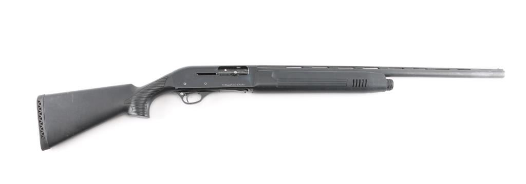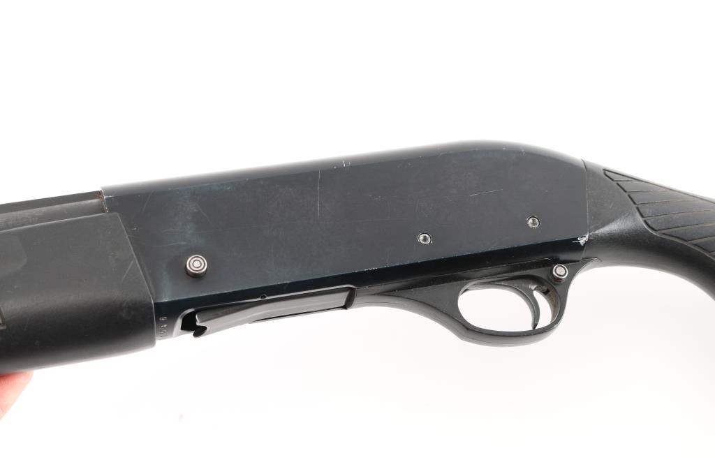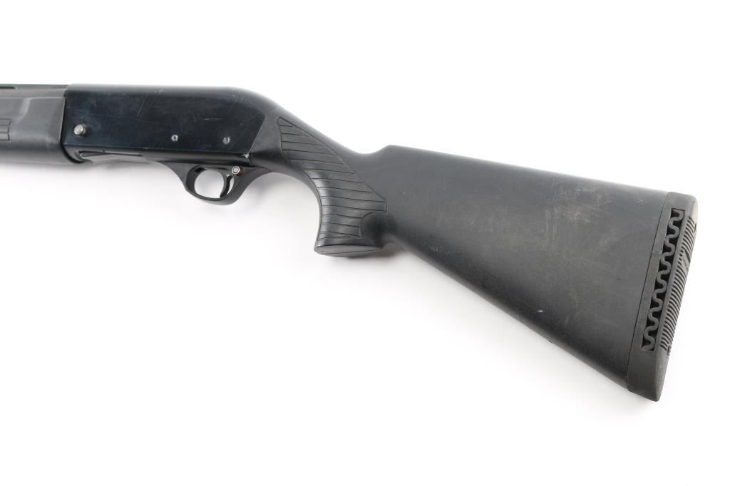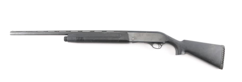 Gas operated semi-automatic 12 Gauge shotgun, chambered for 3" shells, made in Turkey. Features a blued finish 28" vent ribbed barrel with a brass bead front sight, polymer shoulder stock with vented rubber buttpad and vented slide forearm. Curved trigger with plastic trigger guard and push button safety. Retains approximately 75% blued finish with some rust on top of barrel, scratches, marring, scrapes and loss of finish on FCG pins. Stock and forearm has scrapes and sheen finish, due to use. Receiver has loss of finish at charging handle area and charging handle has been replaced with small modified pin. Front end of barrel has a slight dent. Bore is clean and bright. Comes with a MODIFIED choke tube, installed.