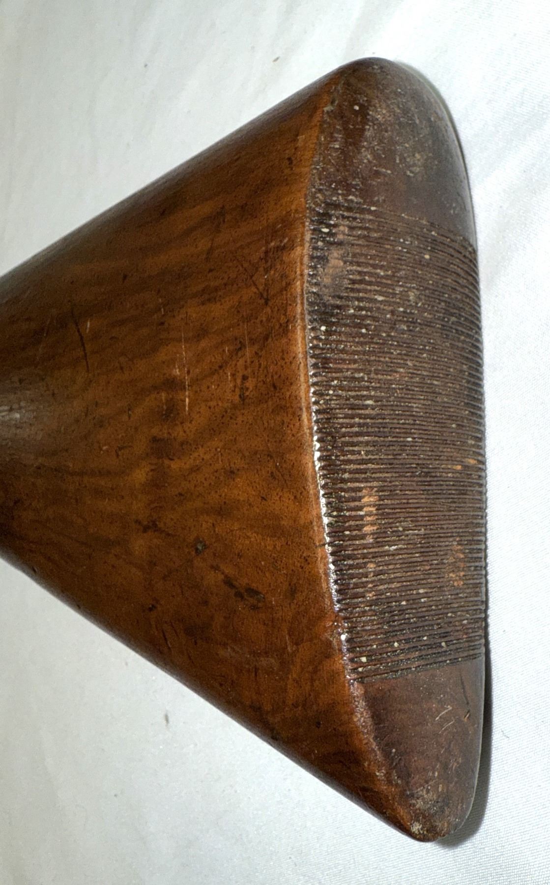 It was no separate butt plate on it originally. Has horizontal lines carved into the wood as