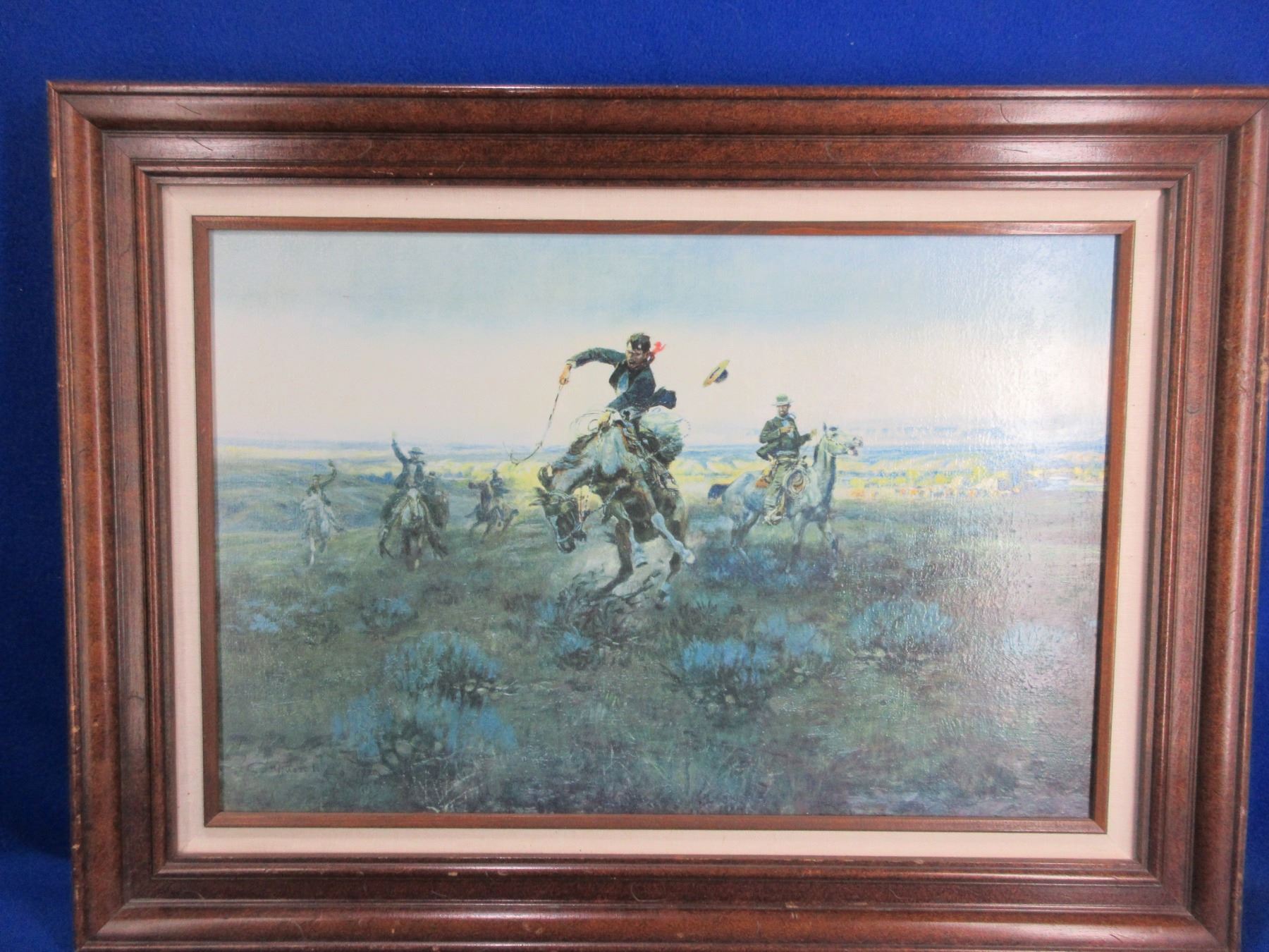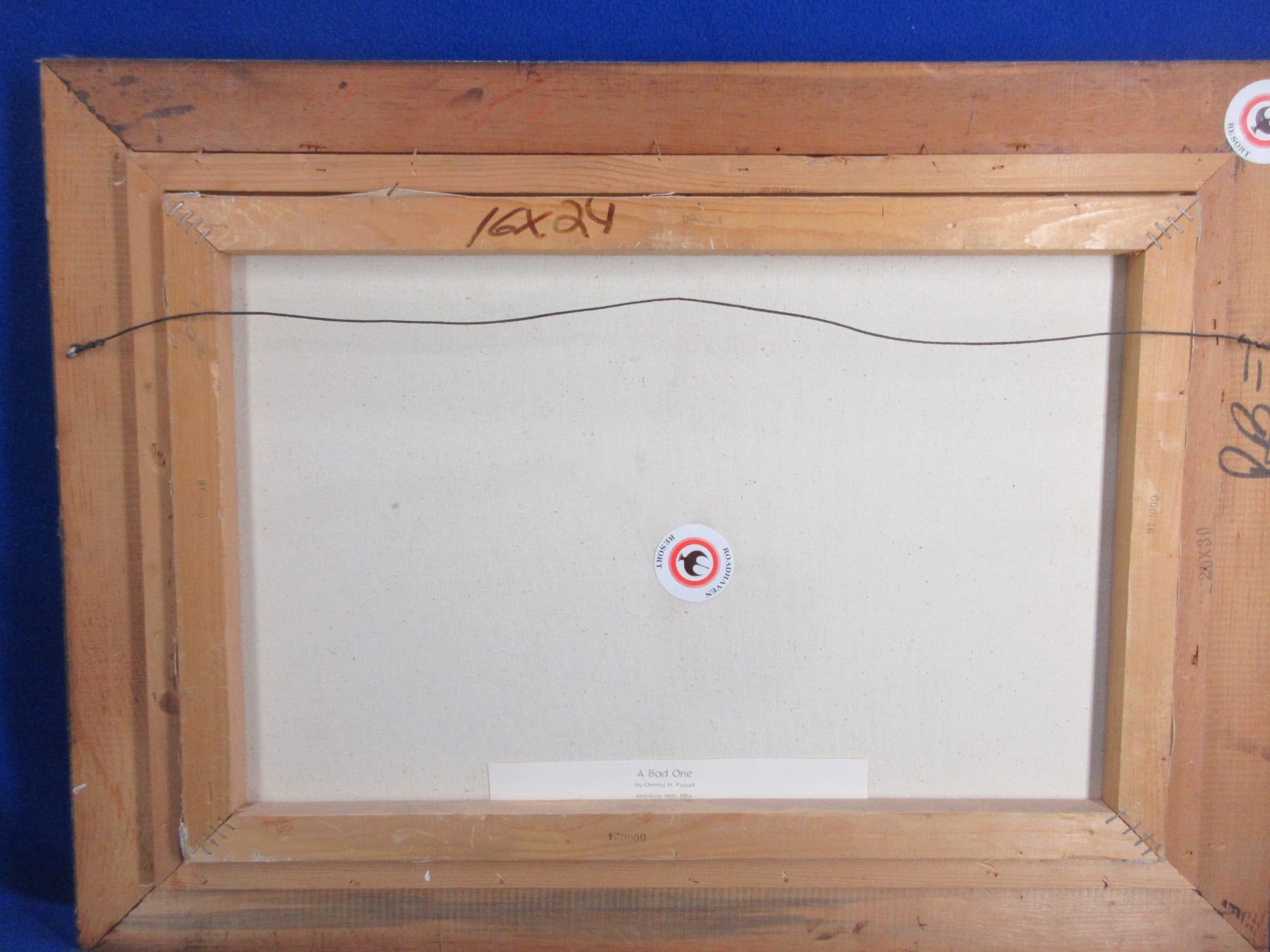 Charles M. Russell Framed Oil Painting - "A Bad One" - Frame 30" x 22" - Canvas 16" x 24'