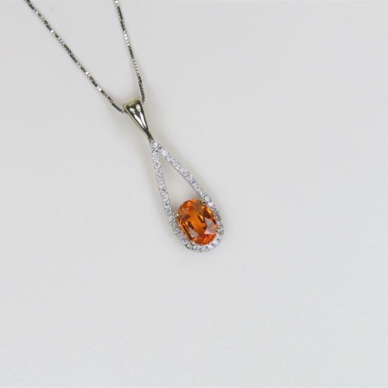 weighing approx. 1.20 carats accented by 38 micro set Diamonds weighing approx. with F-G colors and VS clarity set in 14 karat white gold and white gold box style chain.