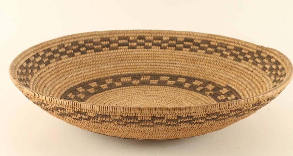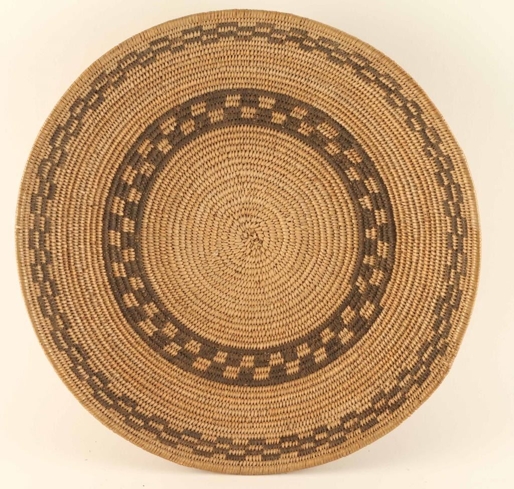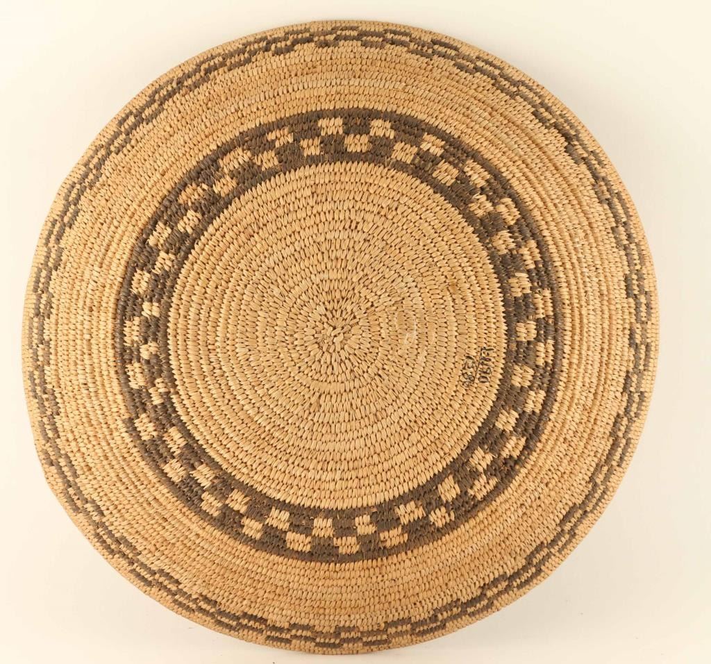with checkerboard geometric bands in overall excellent condition measures 14" diameter. Has a Ammann marking on the back.