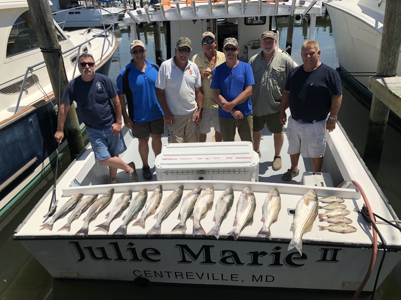 TERMS: This donation is a full day fishing trip for up to six fishermen on the Julie Marie II on the beautiful Chesapeake Bay. The trip is available from May 15 – October 15, 2019. The Julie Marie II is a comfortable 40’ x 12’ Chesapeake Bay style boat, docked 10 minutes across the Bay Bridge. Experts and amateurs of all are welcome and although we can’t guarantee the weather you can definitely expect a great time. The primary target will be Striped Bass/Rockfish, and if conditions are right you will be fighting them on sporting tackle. Schedule your trip for open dates with Captain Charlie.