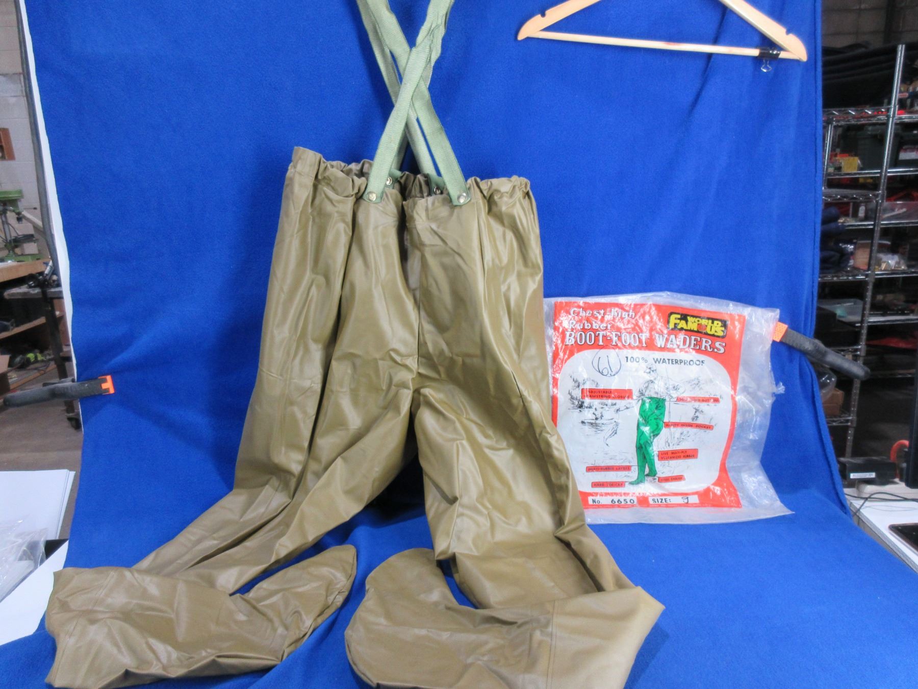 Chest-High Rubber Boot-Foot Waders - Size 9 - No. 6650 - Waders appear unused but have white mildew inside