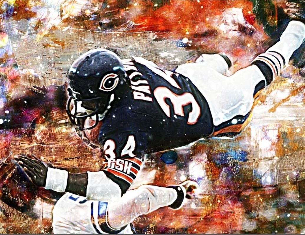 If you are a Bears fan then you want to own this canvas wall art for you man cave. A piece of Da' Bears running back legend! 18"x24"