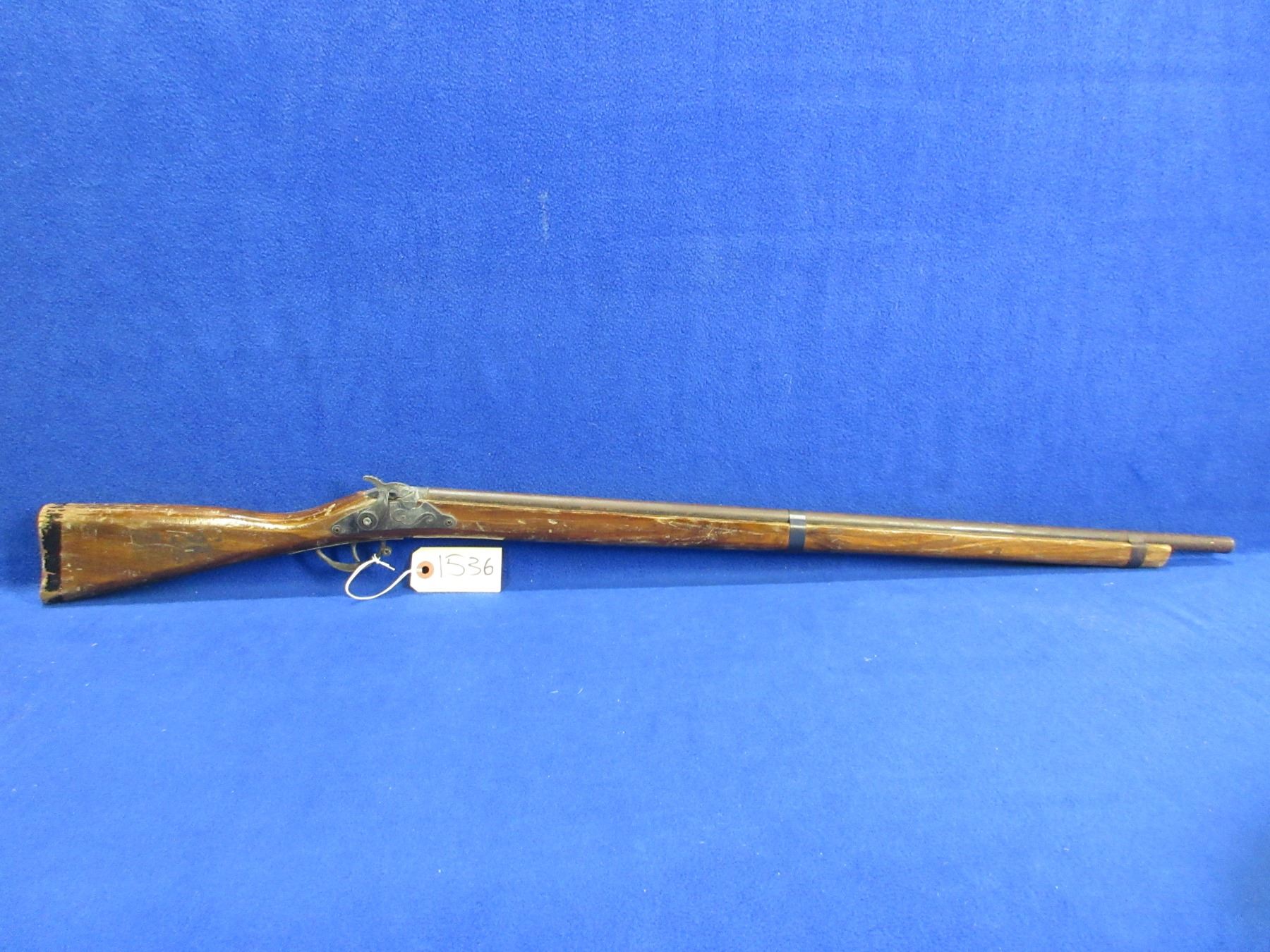 Childs Toy Muzzleloader Cap Gun - cocks and fires, 37" total length, stock has many usage marks, trigger guard is loose, barrel has rust and pitting.