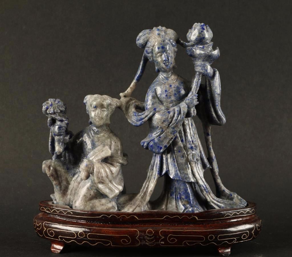 Geishas dancing, measures 6"x6 1/2" overall including wood base.