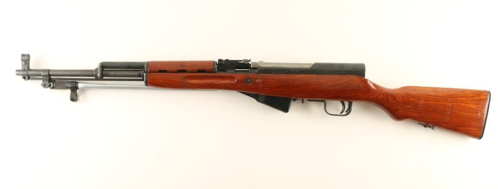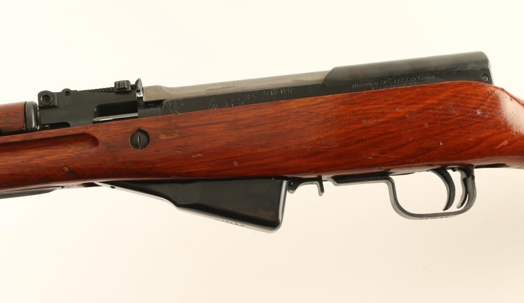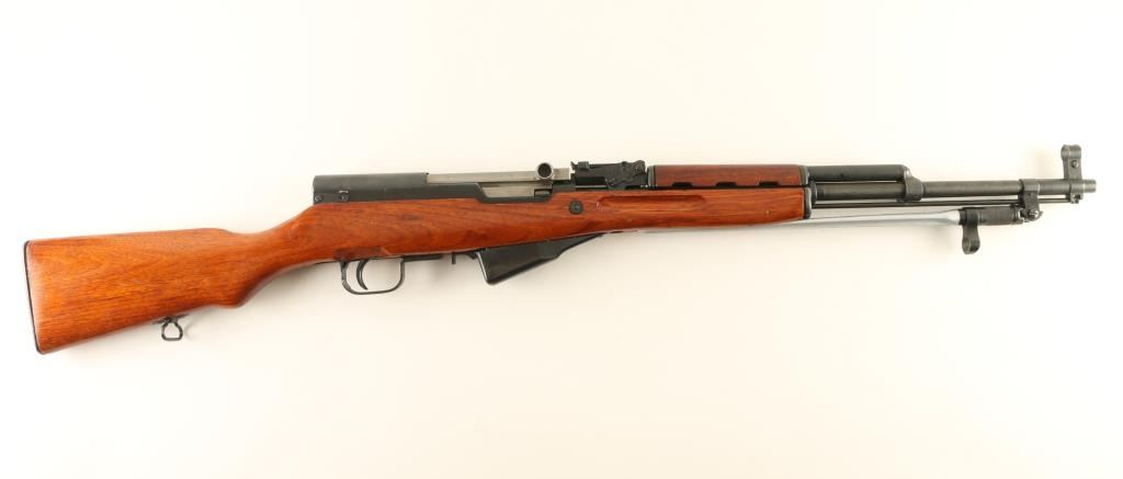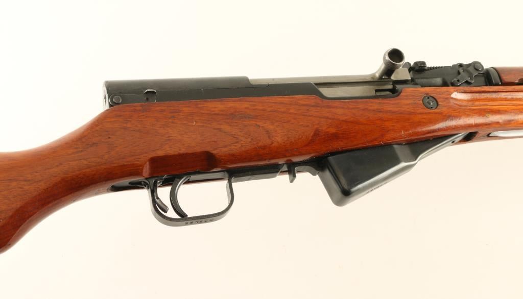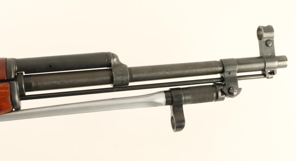 Rifle. Semi-Automatic. Gas-operated. Fixed, non-detachable 10-rd magazine. 20" barrel, with tangent notch rear sight. (100-1000 meters) Hooded post front sight. Fixed spike bayonet. Matching serial numbers. Blued finish. Chrome bolt. Varnished one-piece stock. Bore appears excellent. Blue metal is very good with some minor scratches. Wood is very good with minor scratches/dings. A nice one. NRA Condition-Very Good.