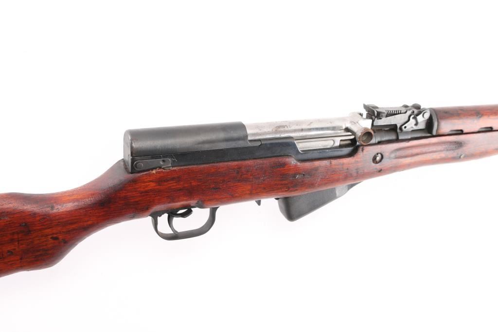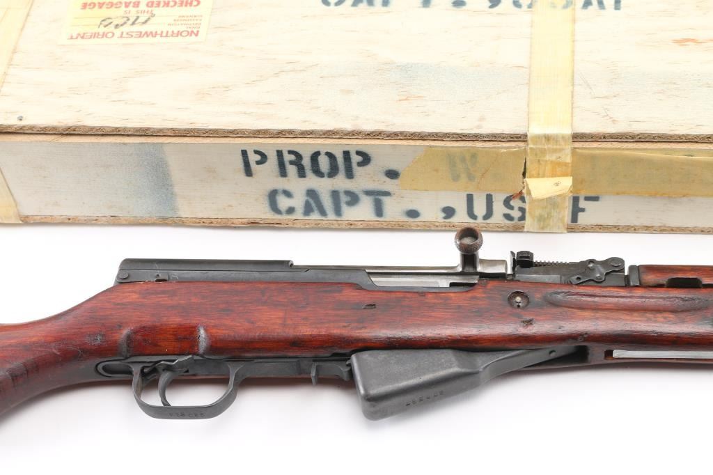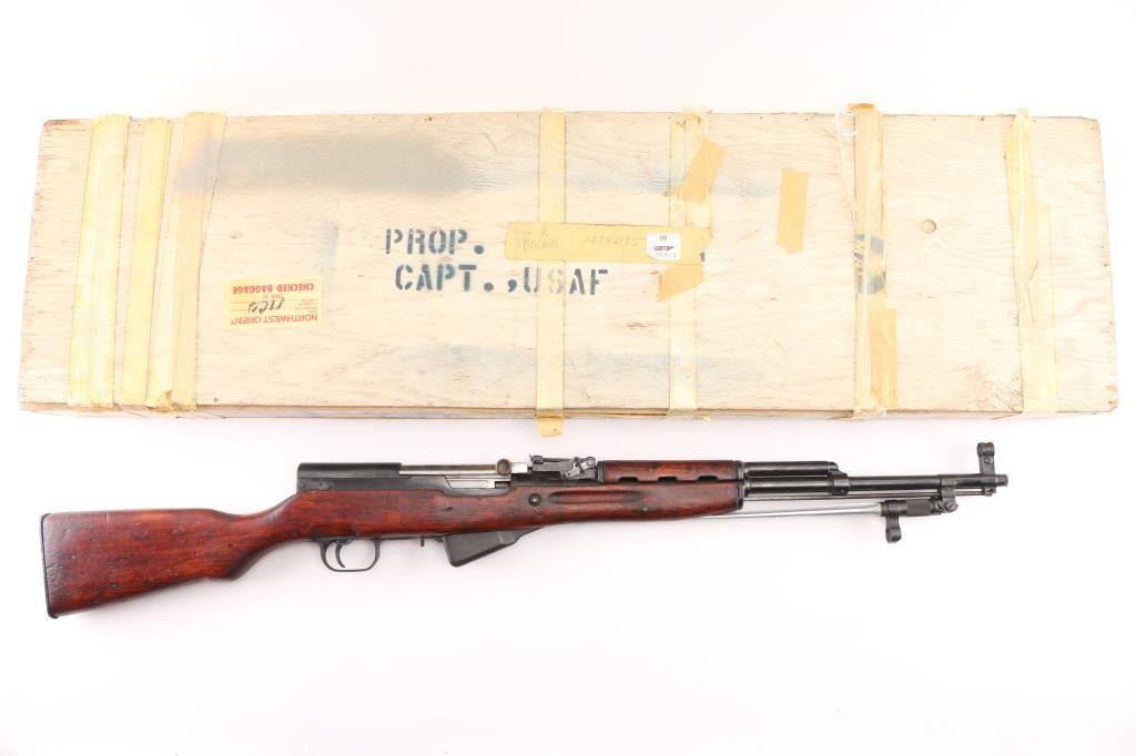 SN: 12342195. Vietnam War capture Gun. Patterned directly after the Russian SKS infantry rifle, the Chinese Type 56 was among the assortment of small arms fielded by the main line and irregular elements of North Vietnam during the Vietnam War. This SKS was manufactured in 1967. Post front and tangent rear sights, with the left side of the receiver showing the "26" in triangle factory mark. (Jiansh factory 26), 3 Chinese letters meaning "type 56", and the serial number, other serial numbers are mismatched. Folding bayonet, bore is very good. Overall very good condition, Of course no import marks. This is from the estate of Capt. Harold C. Brown, Jr. USAF, who was a fighter pilot and the ALO (Air Liaison Officer) with the Army's 1st Air Cavalry Division, who sent this rifle home in 1969. We contacted Mrs. Brown to try to acquire the capture papers, who if she finds them she will send them to us, in turn we will pass it on to the buyer. She did state in an email to us that Capt. Brown sent two rifles back from Vietnam, stating "One of the rifles has a Viet Cong name carved into it". Copy provided. The other rifle is also a Chinese Type 56 SKS, which is in this action. Please see this lot for the full story. Even without the capture papers this rifle has impeccable provenance. Comes with the original shipping crate. Has a Northwest Orient shipping label, which has a U.S. contract during the Vietnam War. NRA Condition-Good. C&R Firearm.