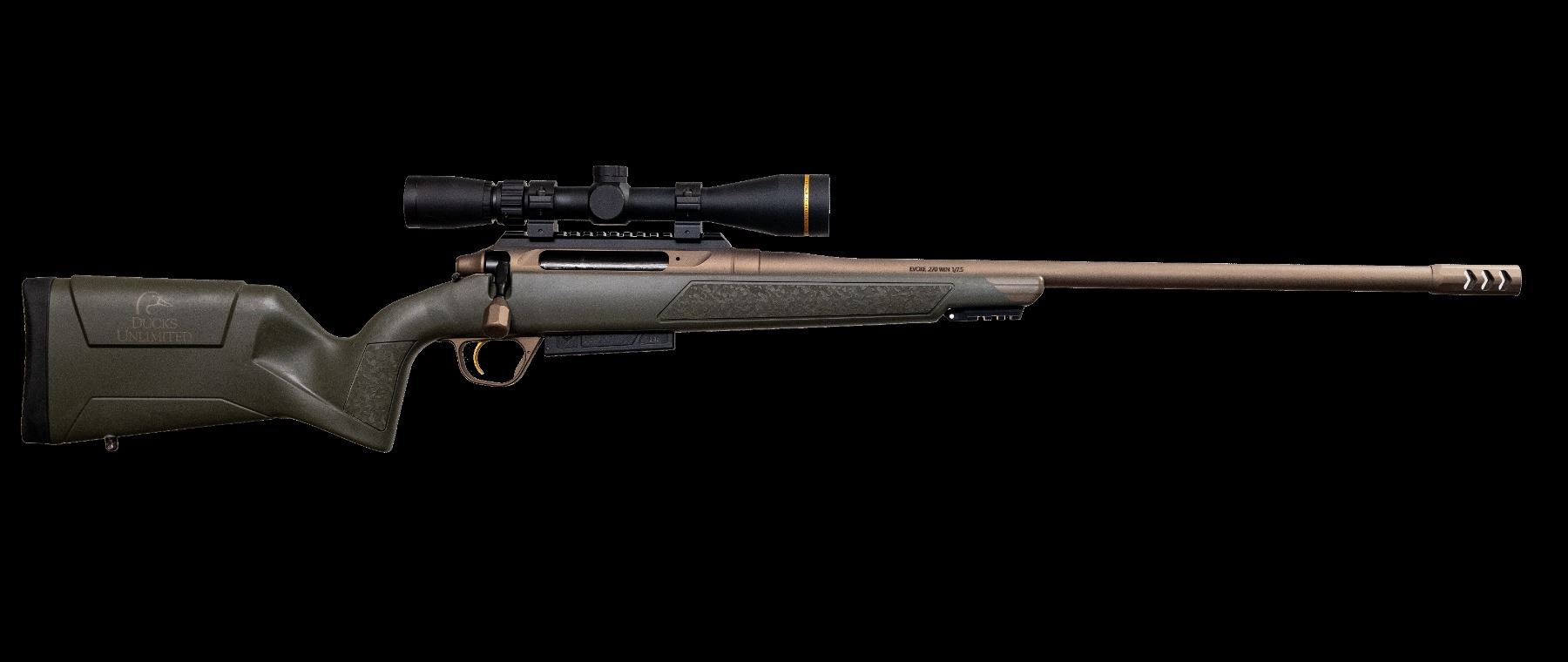 The Christensen Arms Evoke sets the standard for precision and luxury in firearm design. Chambered in .270 caliber, it features a Cerakoted 416R stainless steel barrel with a muzzle brake for reduced recoil and enhanced accuracy. Ducks Unlimited Logo on the Butt Stock. A Leupold 4-12x40mm Hunt Plex Scope, mounted on a 20MOA rail with Warne Vapor rings, ensures exceptional optics and precise targeting in any hunting environment. This masterpiece is securely housed in a hard plastic case and includes a gun lock for safe storage, making it a coveted choice for enthusiasts and collectors seeking unparalleled performance and craftsmanship.