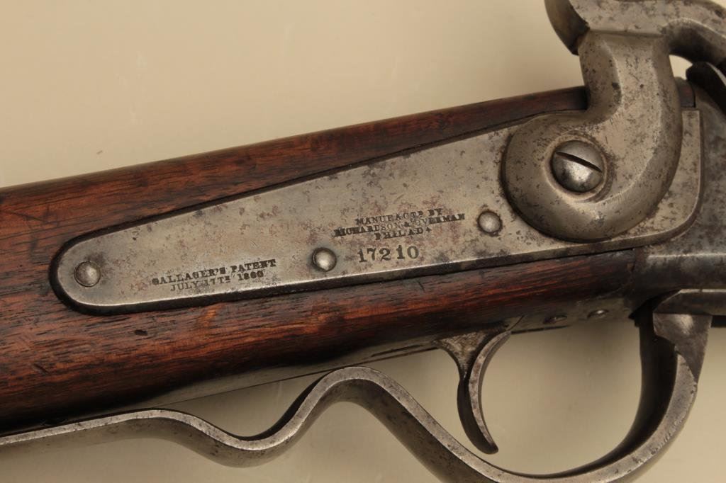 22” barrel, blued and case hardened finish, S/N 17210, in overall good condition with grey/brown patina, scattered spots of erosion and some pitting on the barrel, good action, good markings and near fine bore; wood butt stock shows scattered old mars and dings from carry and storage. (Antique). Est.: $800-$1,600.