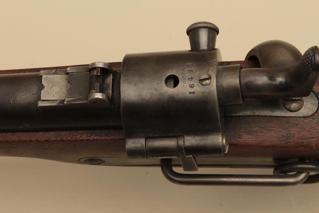 caliber, 22” round barrel, blued finish, wood stock, S/N 16498, in overall very good condition showing considerable muted blued finish and dark patina to metal surfaces, crisp action, good markings, bore shows some spots of erosion, very good wood stock. (Antique). Est.: $800-$1,600.