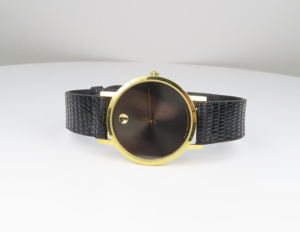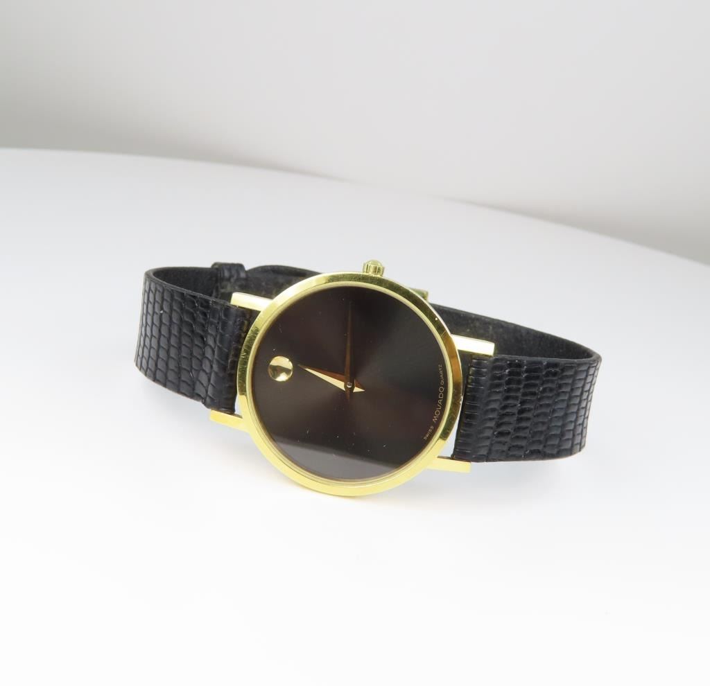 Featuring Black Watch Face With Yellow Gold Tone Case With Signature Styling Face And Black Faux Lizard Embossed Leather Strap - 8½ Inches In Overall Length, Also Water Resistant.