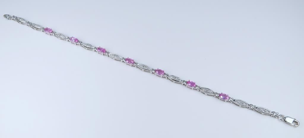 featuring 7 Natural oval cut Pink Sapphires weighing approx. 2.00 carats accented with small Diamonds set in a charming 10 karat white gold setting.
