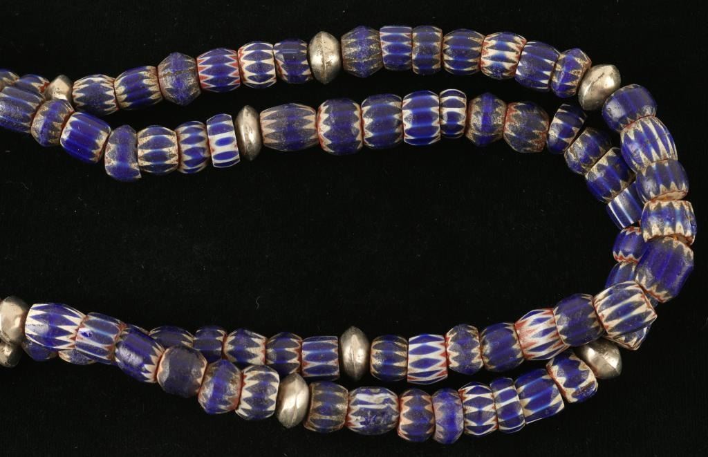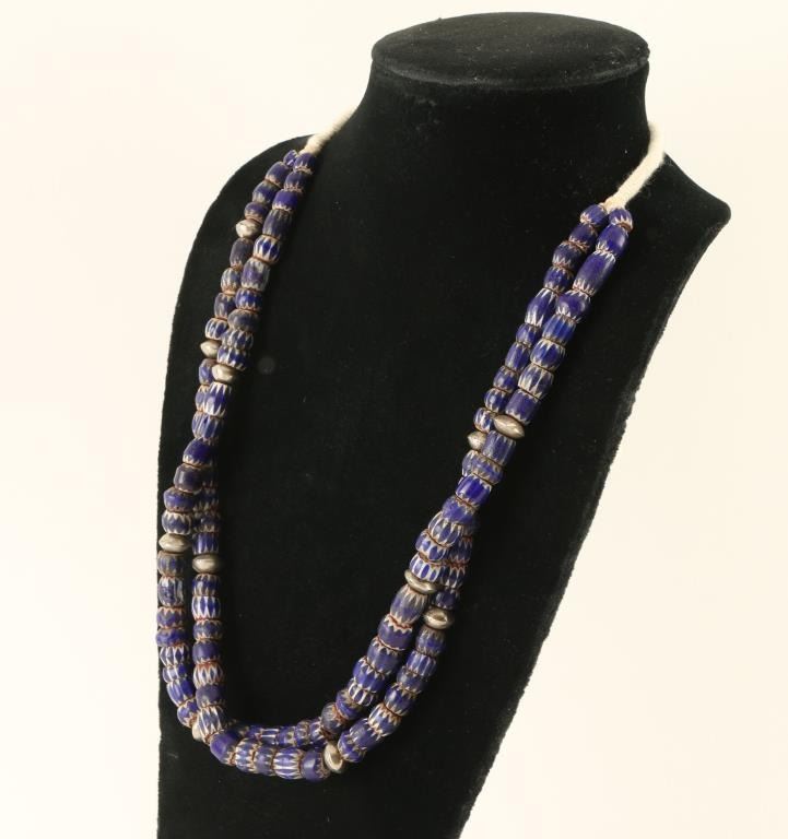 Accented with silver beads, two strands.