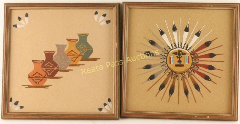 1 depicts five Ollas and the other shows eagle sunface framed alike, image sizes 11 1/2"x11 1/2".