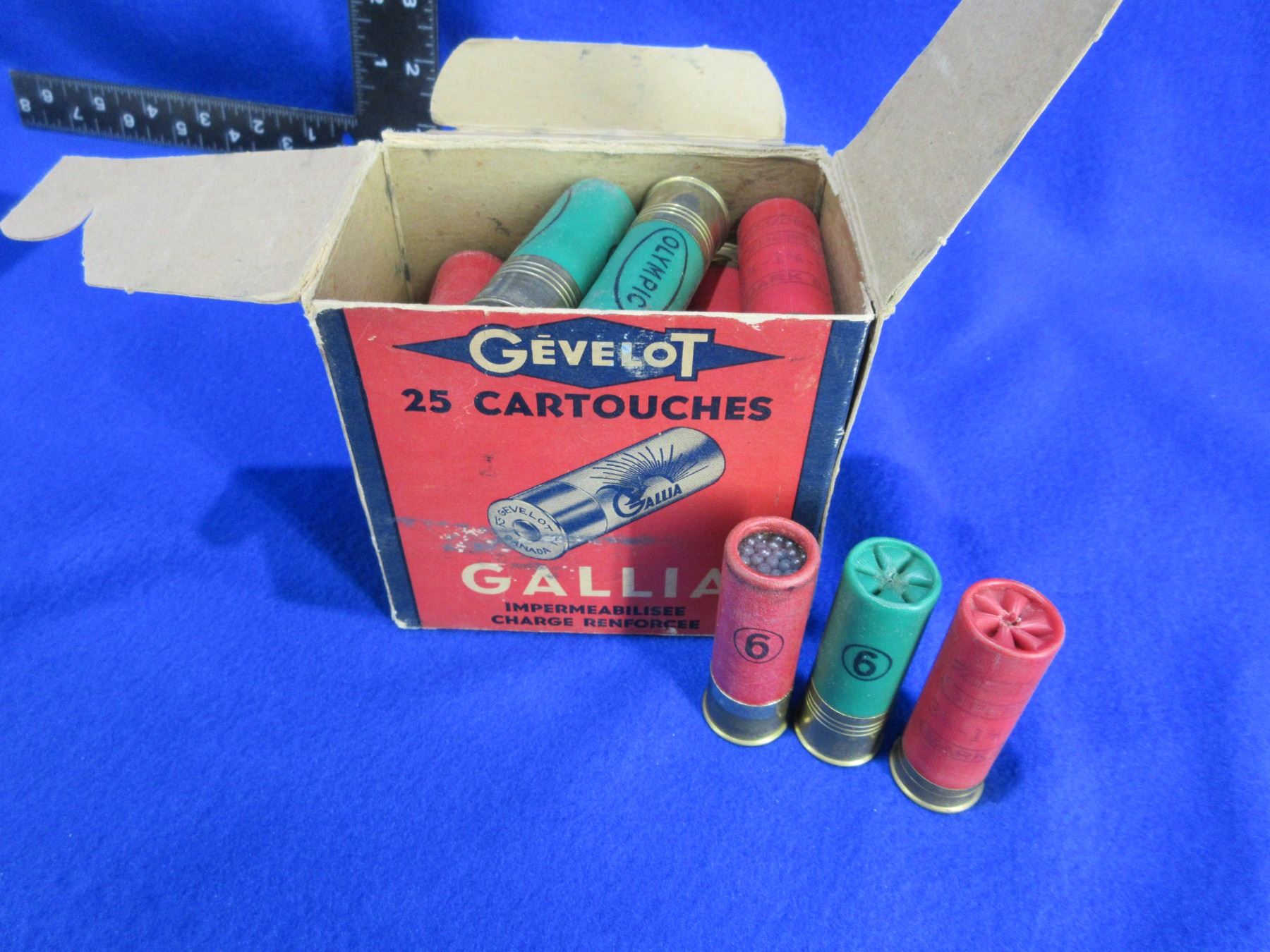 Collector Ammo - 12 Ga. 2 3/4" 6 Shot Gevelot Shotshells - Box of 19 (correct to the box) + 6 others, 25 Total - PICK UP ONLY