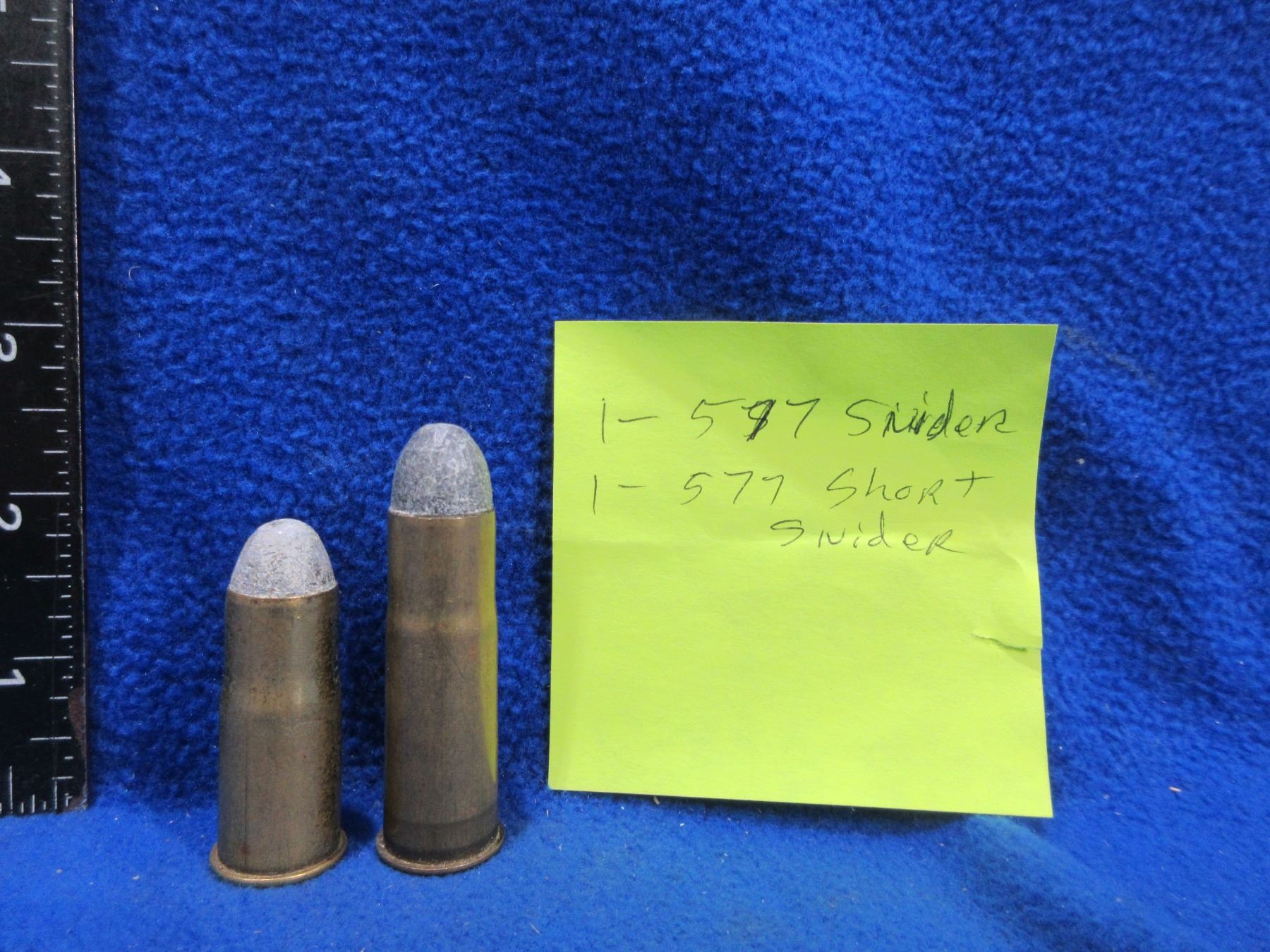 Collector Ammo - 2 - 577 Snider Cartridges (Pick Up or Ship by UPS Only) - 577 Snider Kynoch and 577 Short Snider (No Headstamp)