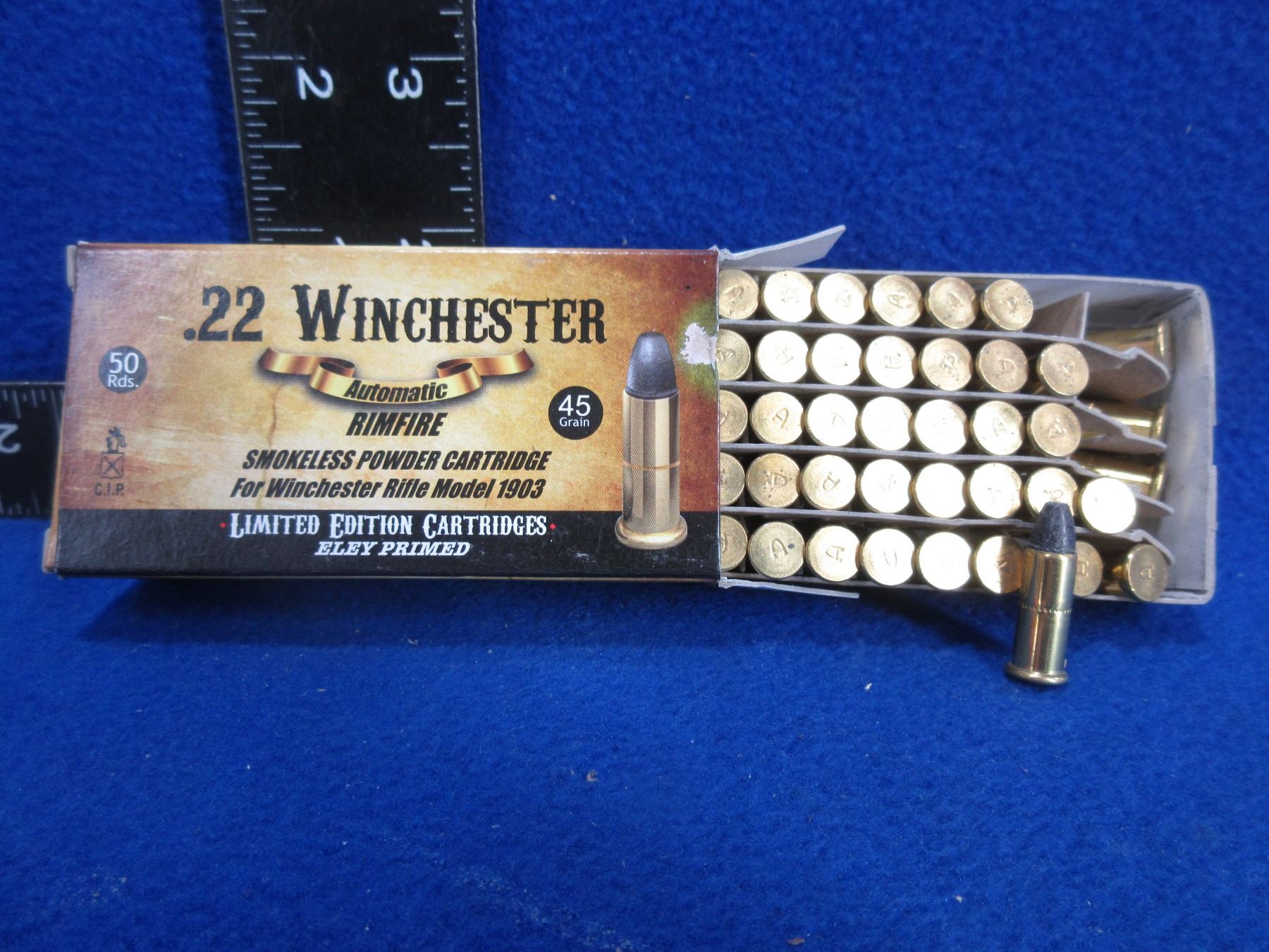 Collector Ammo - 22 Winchester Automatic Rimfire 45gr Limited Edition Eley Primed Cartridges - For Winchester Rifle Model 1903 - Box of 50 - Must Ship Purolator