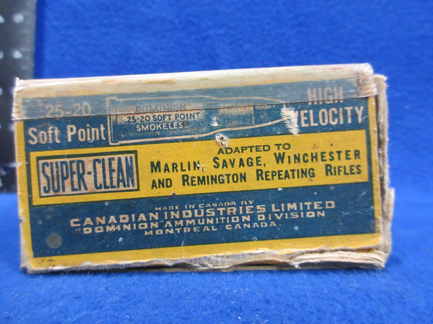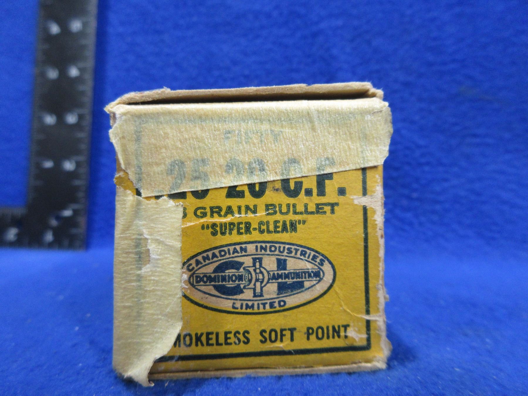Collector Ammo - 25-20 CF 85gr SP HV (Pick Up or Ship by UPS Only) CIL Dominion Cartridges - Box of 50 - Box is Damaged