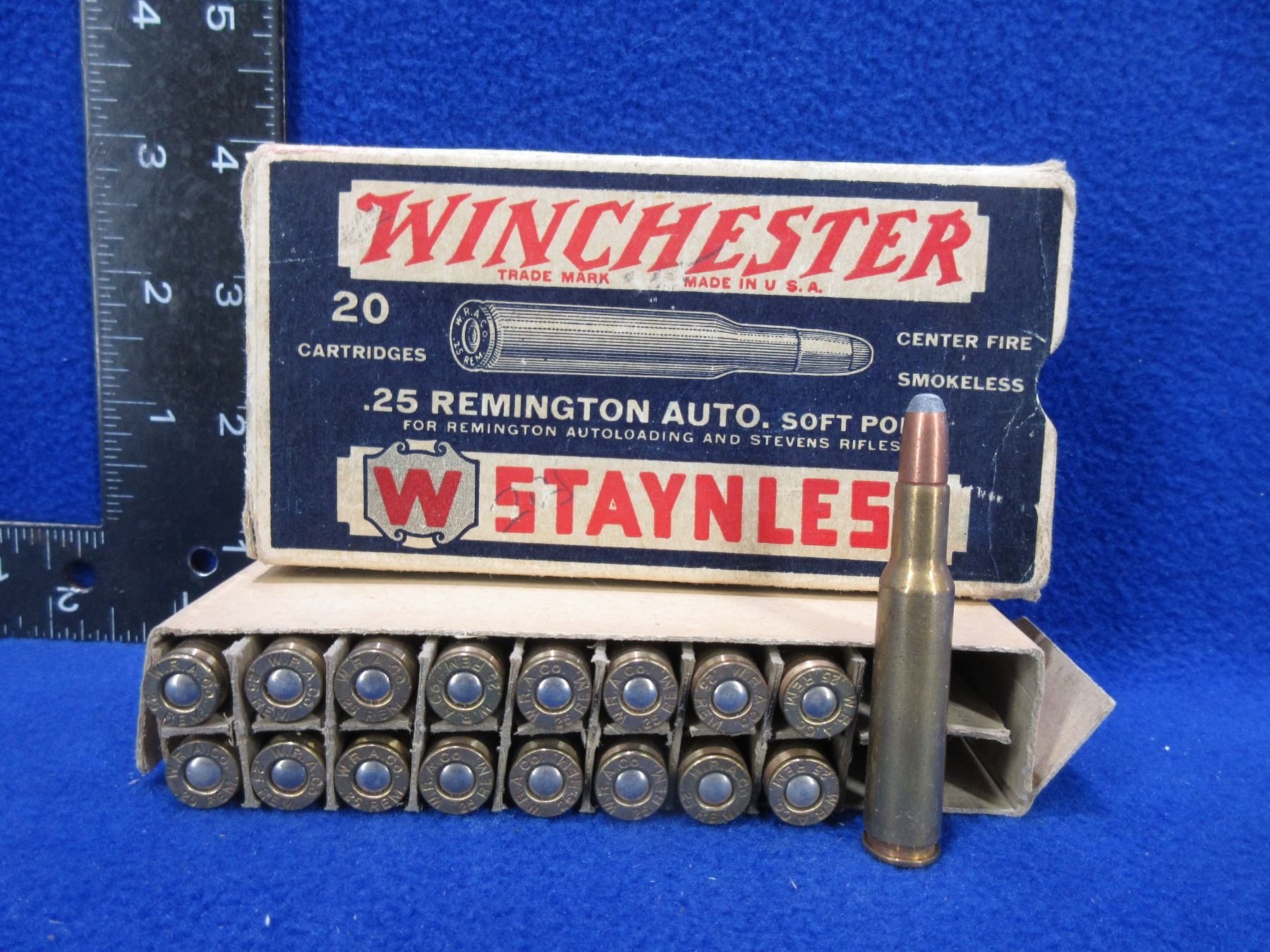 Collector Ammo - 25 Rem. Auto Winchester Cartridges - Box of 17 - Must Ship Purolator