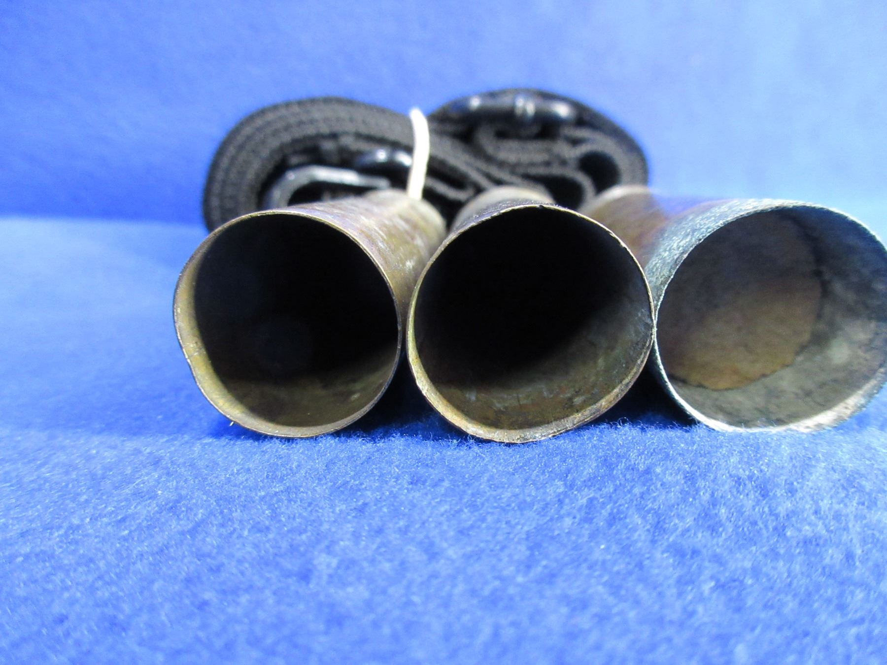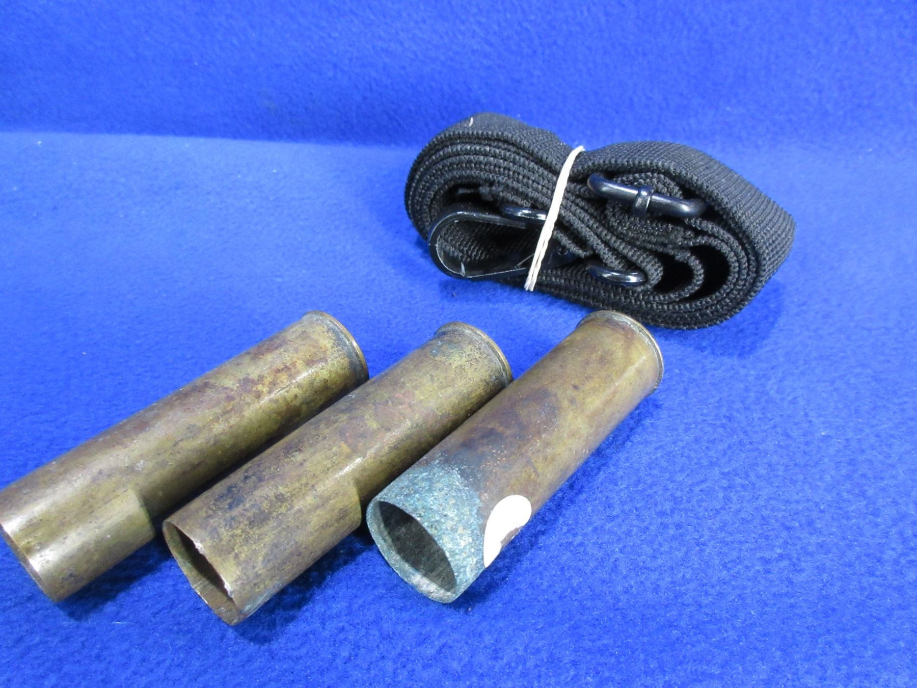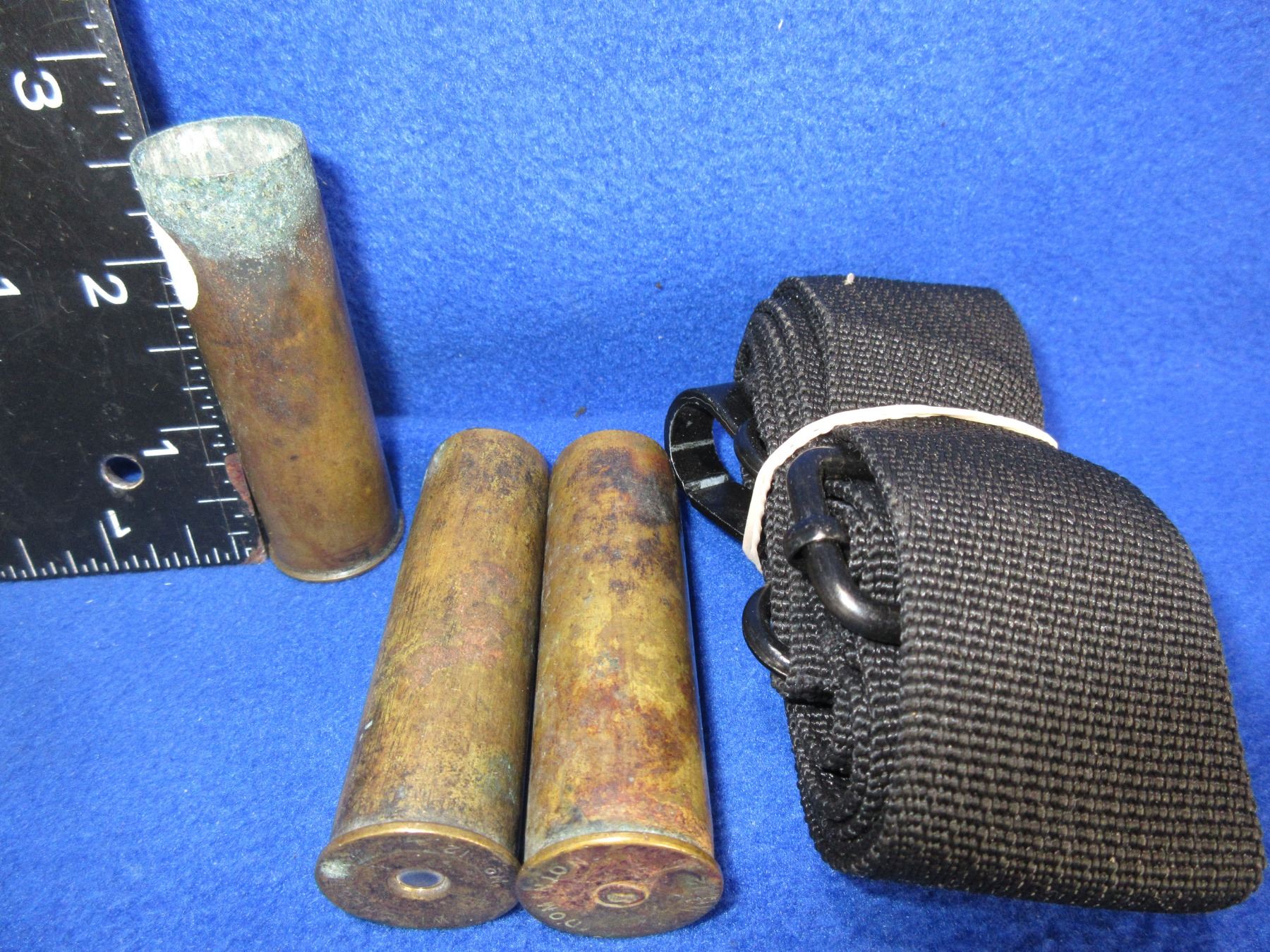 Collector Ammo - 3 Brass 12 Ga. Shotgun Shells and a Sling - Winchester and D C Headstamps - 1 is Loaded - Must Ship Purolator