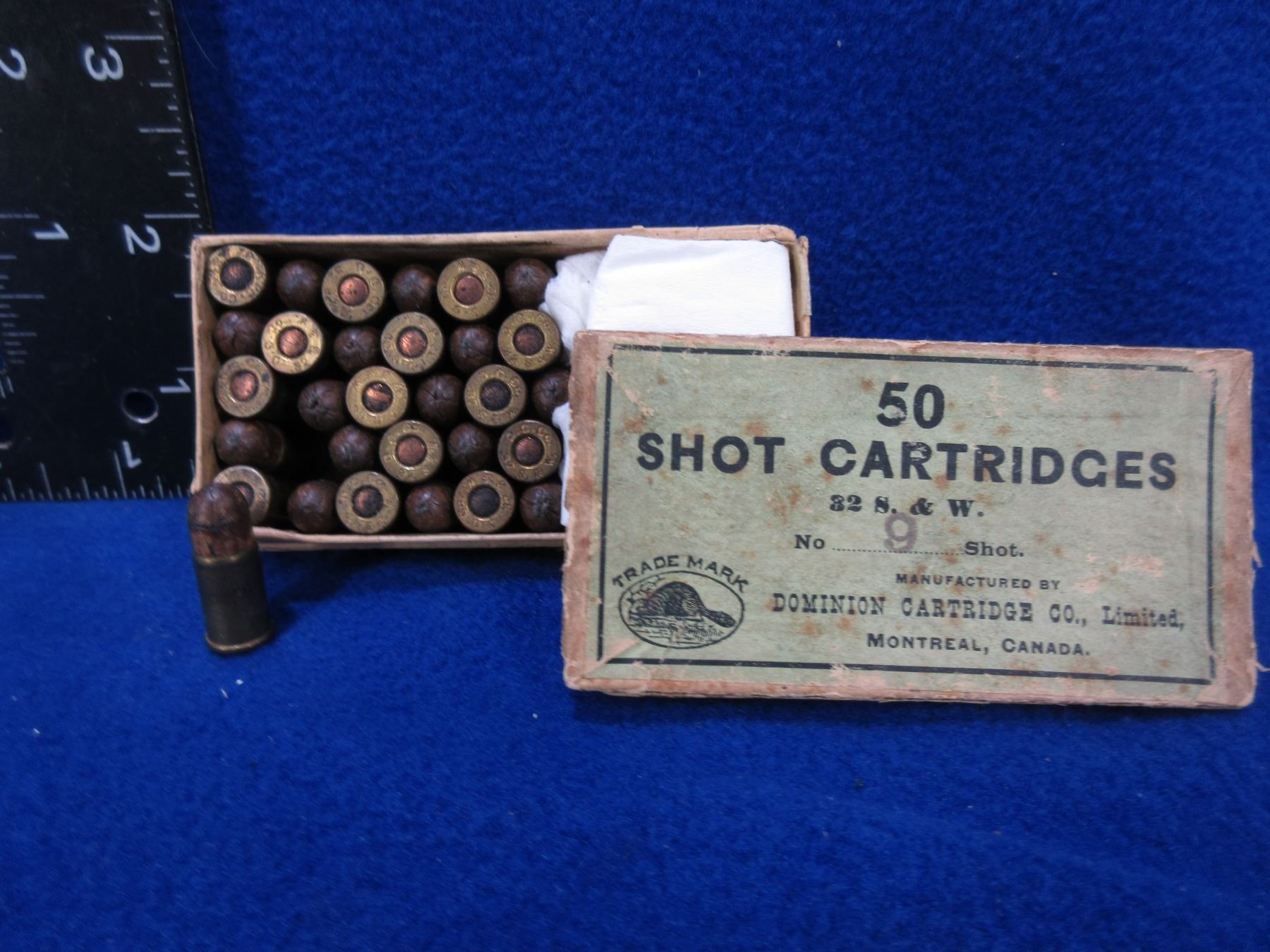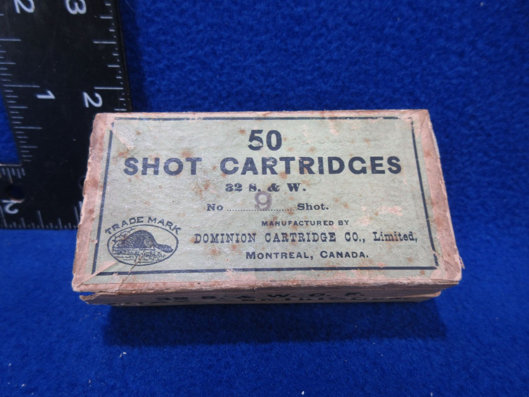 Collector Ammo - 32 S&W No. 9 Shot Dominion Cartridges - Beaver Logo - Open box of 30 - Box is damaged