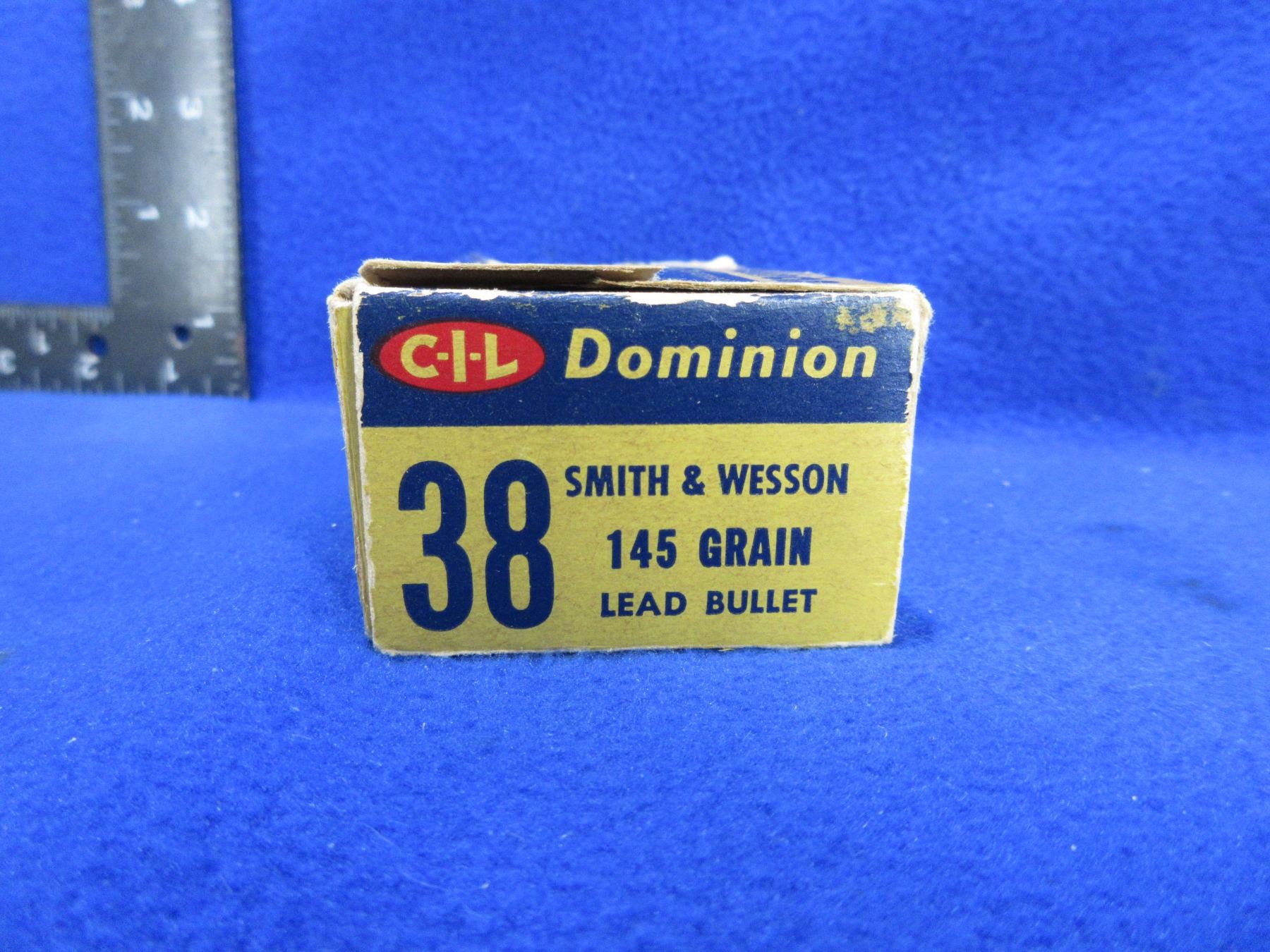 Collector Ammo - 38 S&W 145gr Lead Bullet CIL Dominion Cartridges - Box of 49 - Box is Damaged - Must Ship Purolator