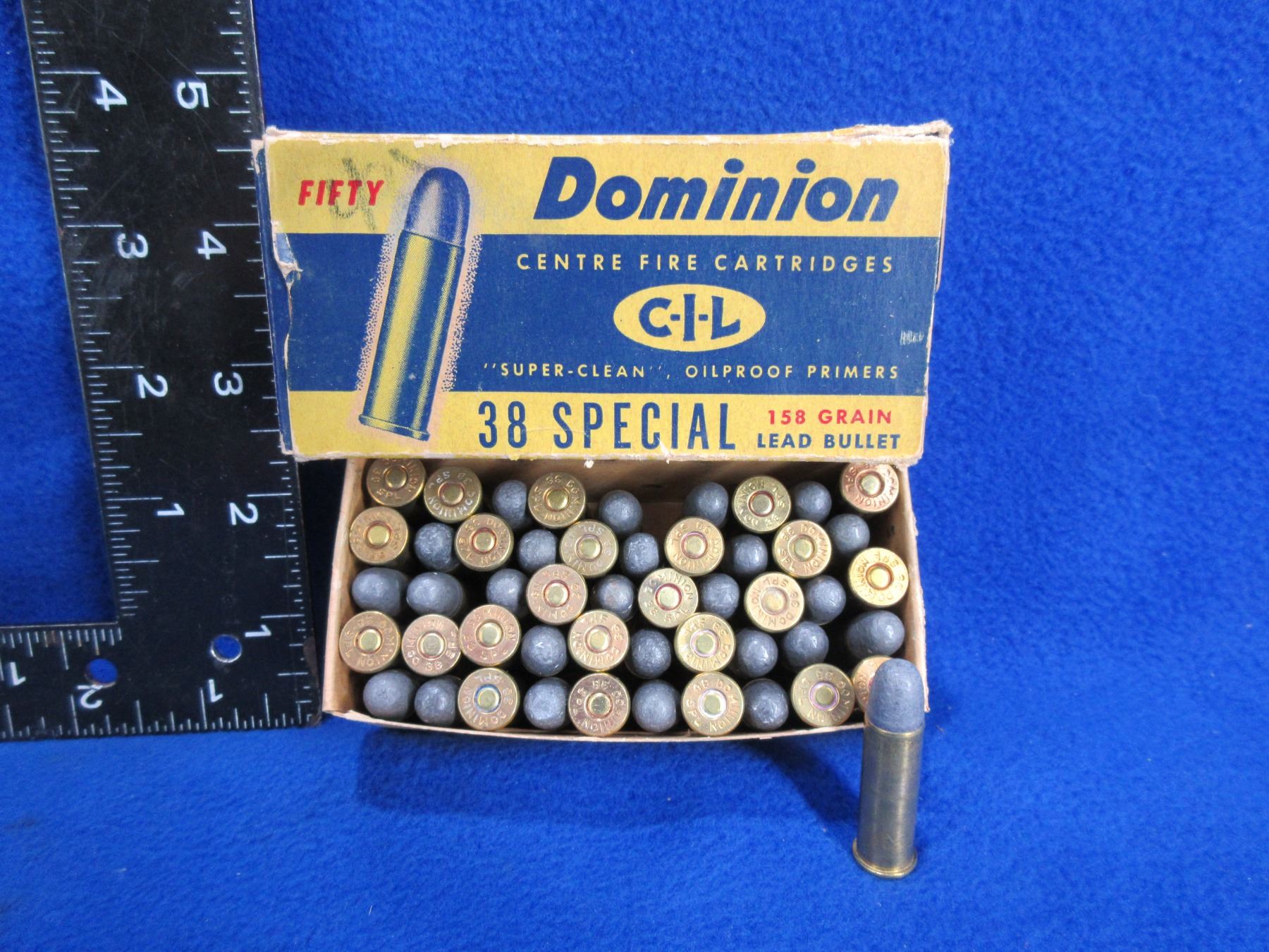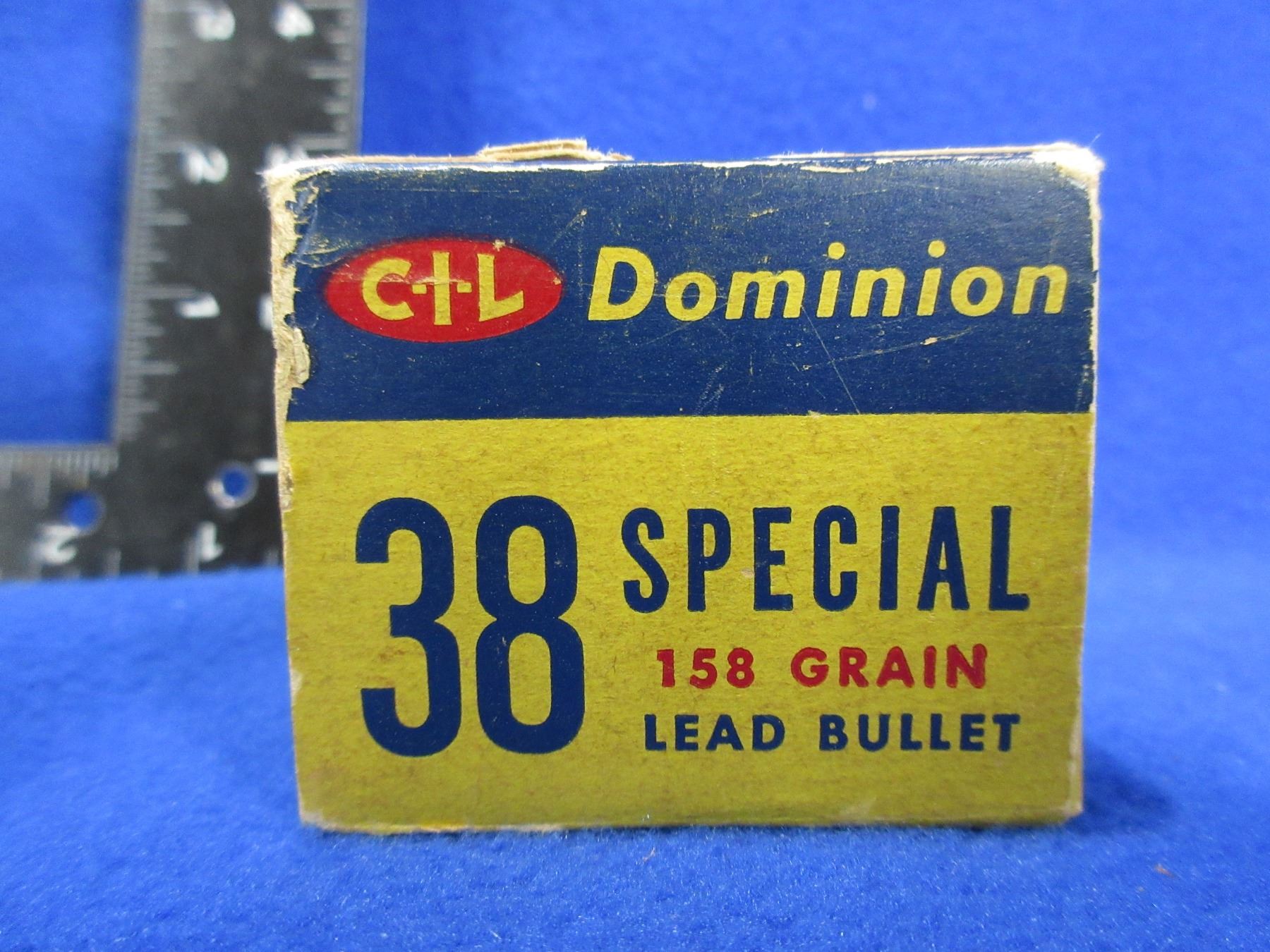 Collector Ammo - 38 Spl 158gr Lead Bullet CIL Dominion Cartridges - Box of 50 - Box is Damaged - Must Ship Purolator