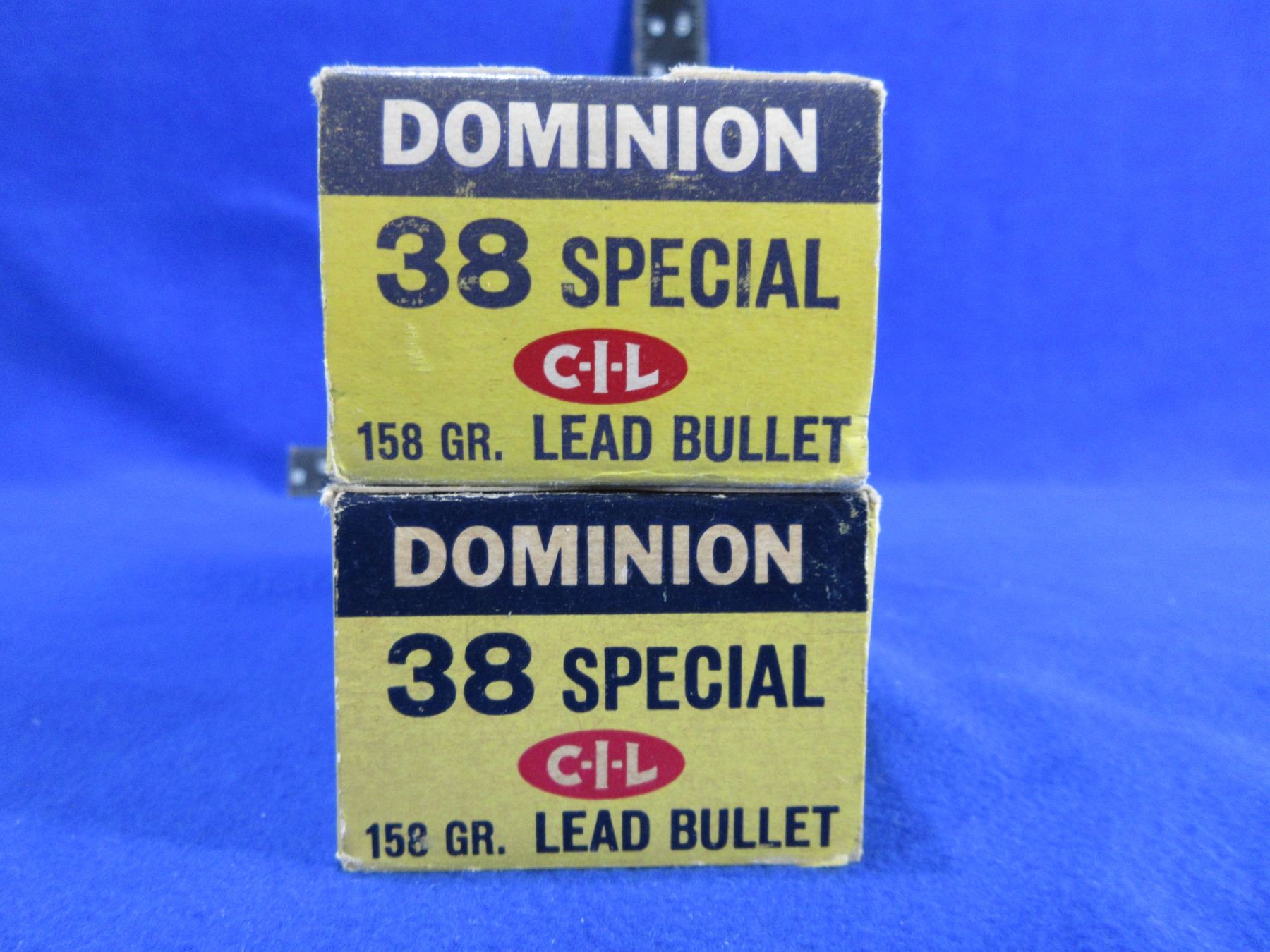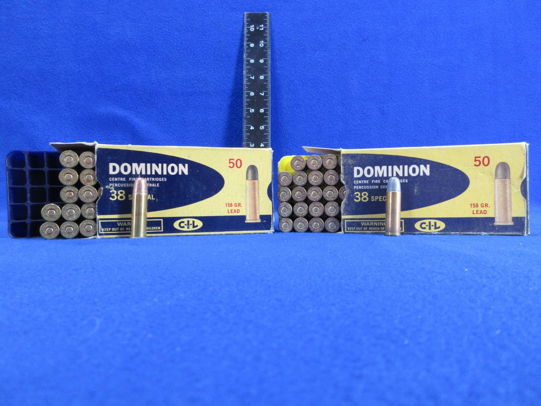 Collector Ammo - 38 Spl Lead & FMJ Dominion Cartridges - Box of 50 (lead appear correct to the box), Box of 38 (FMJ not correct to the box) - PICK UP ONLY
