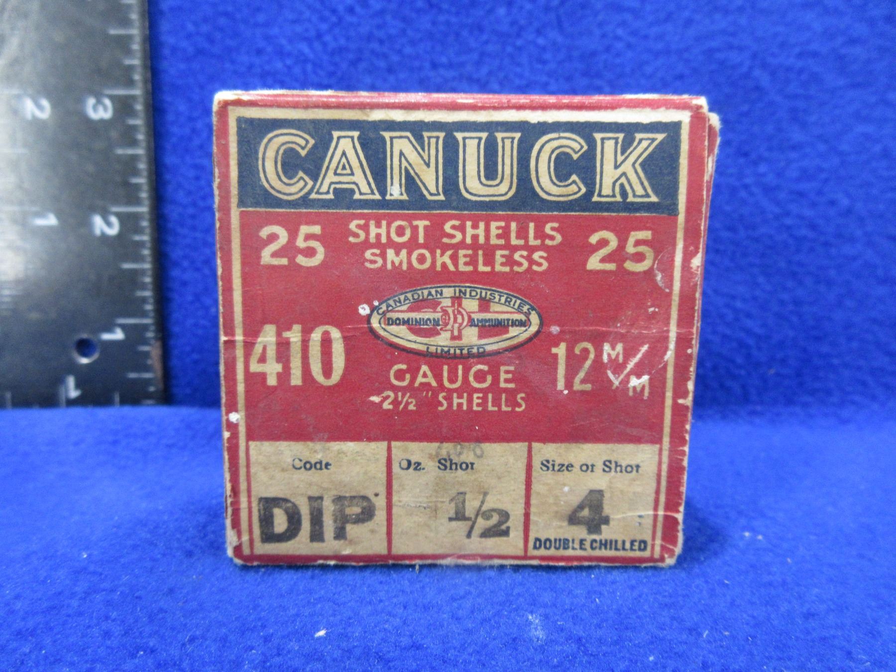 Collector Ammo - 410 Ga 2 1/2" 4 Shot Canuck Shotshells - Box of 25 - Must Ship Purolator