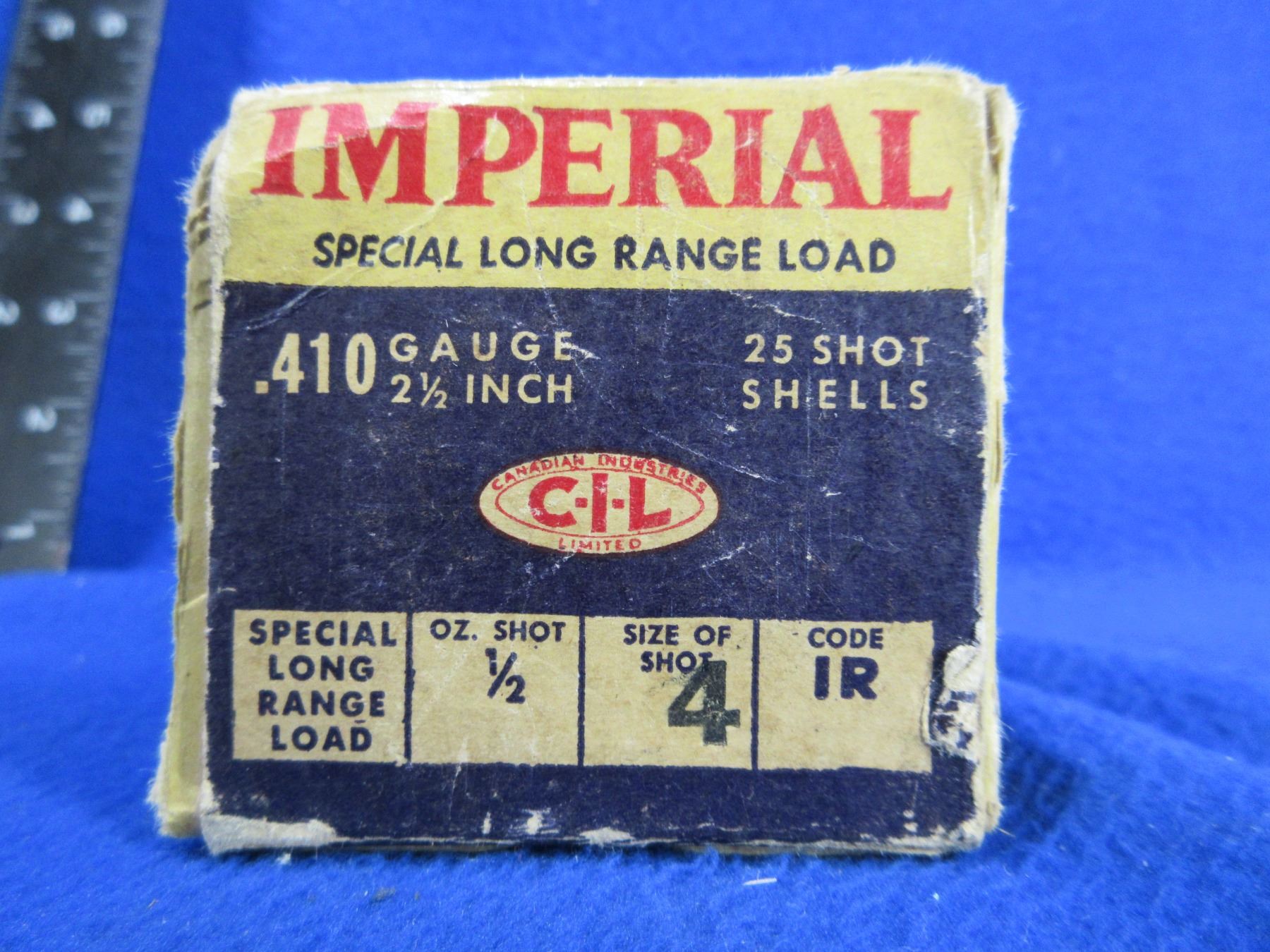 Collector Ammo - 410 Ga. 2 1/2" 4 Shot CIL Imperial Paper Shotshells - Box of 25 - PICK UP ONLY