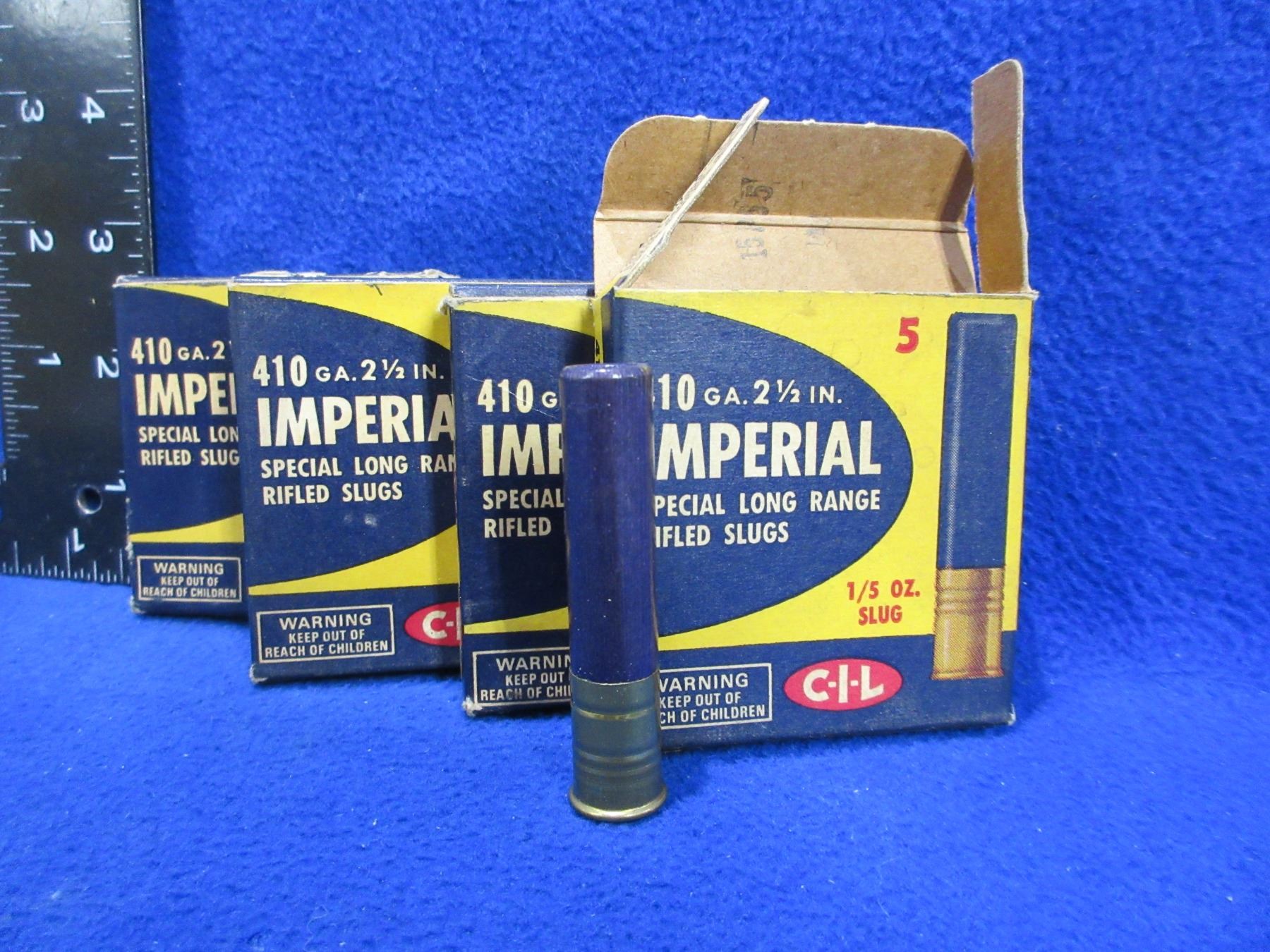Collector Ammo - 410 Ga. 2 1/2" 1/5 oz Rifled Slugs CIL Imperial Paper Shotshells - 3 Boxes of 5, Box of 3 - PICK UP ONLY