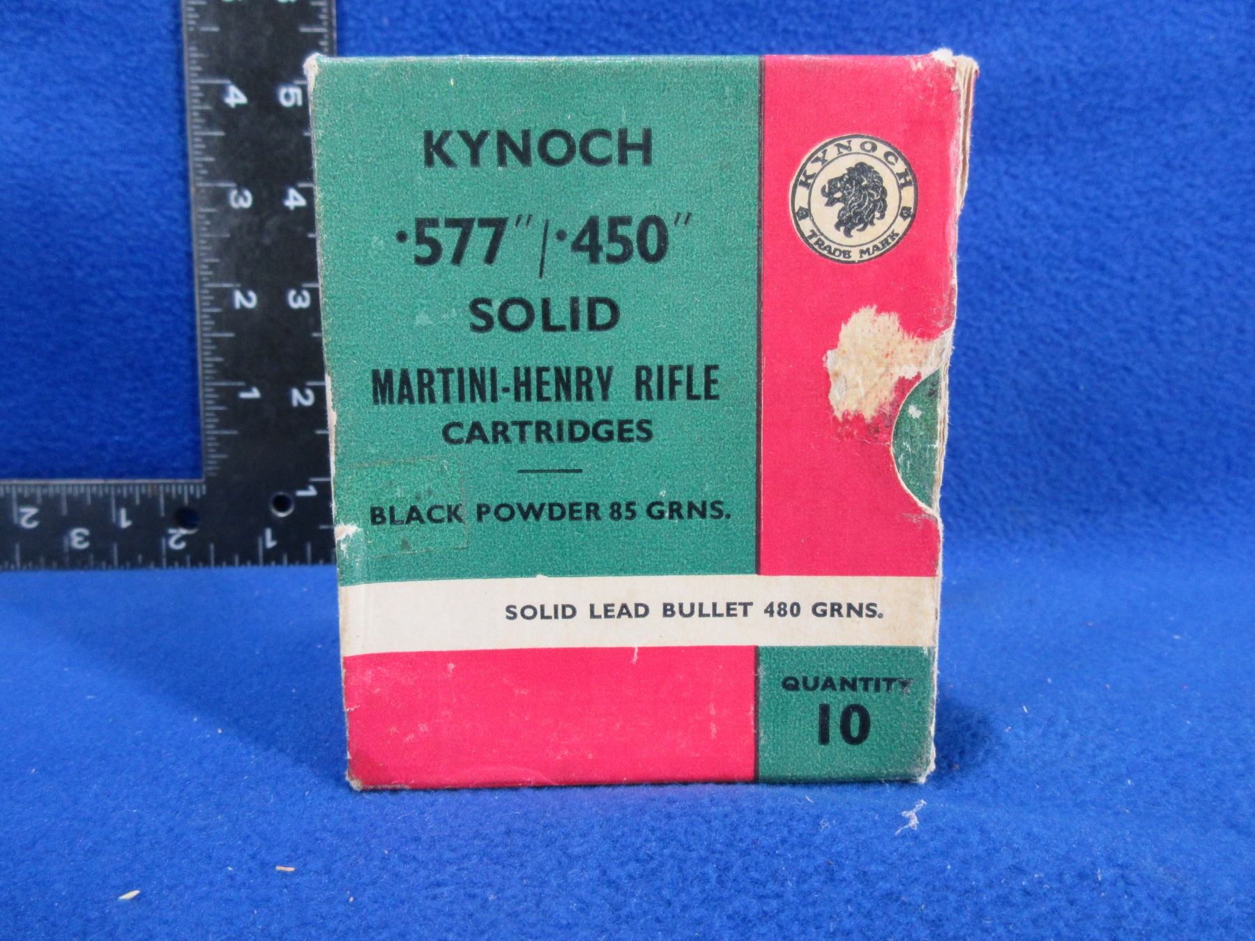 Collector Ammo - 577/450 480gr Solid Martini Henry Rifle Kynoch Cartridges - Black Powder 85 GRNS. - Box of 10 - Must Ship Purolator