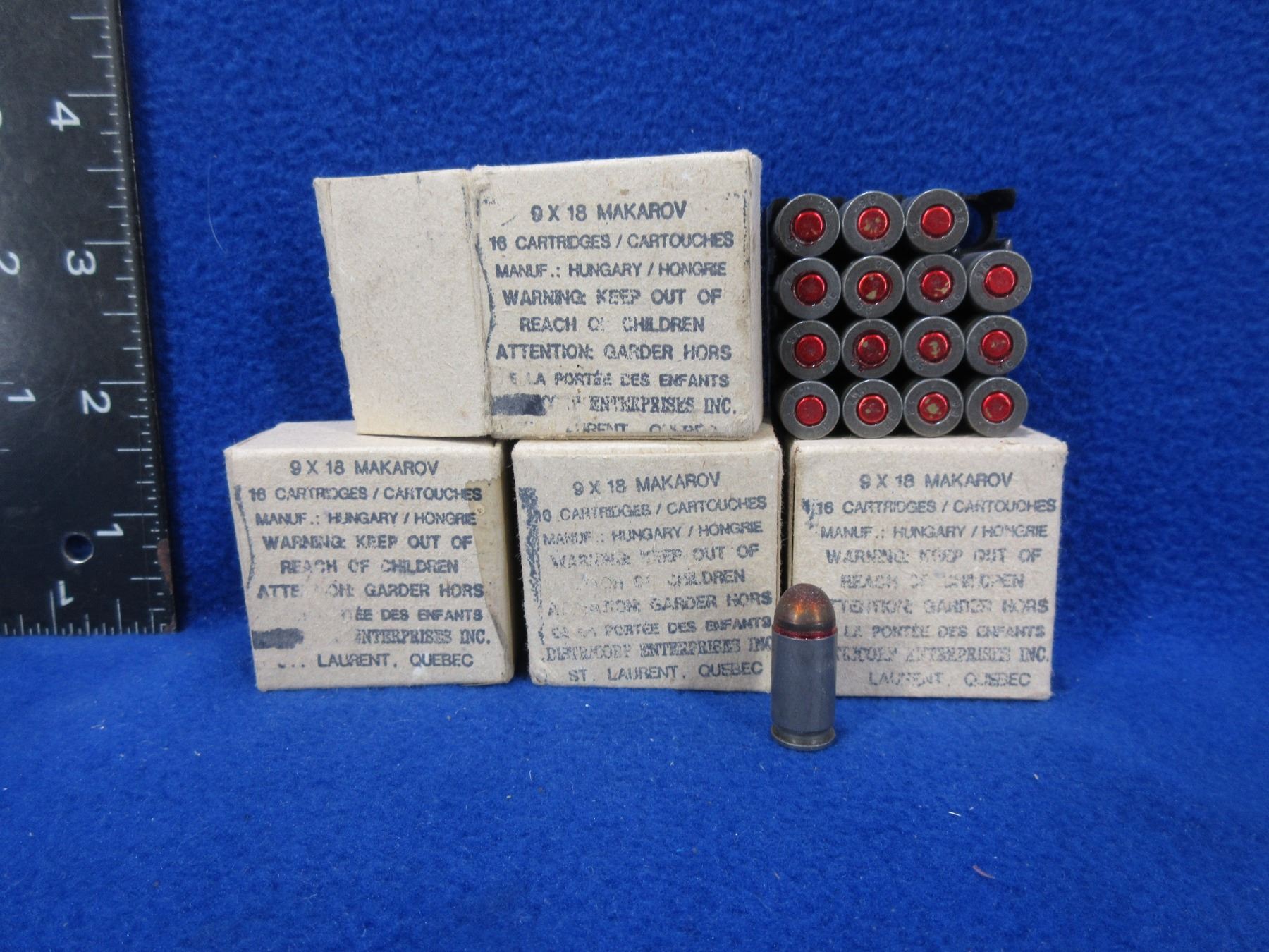Collector Ammo - 9 X 18 Makarov Cartridges - 4 Boxes of 16 - Made in Hungary