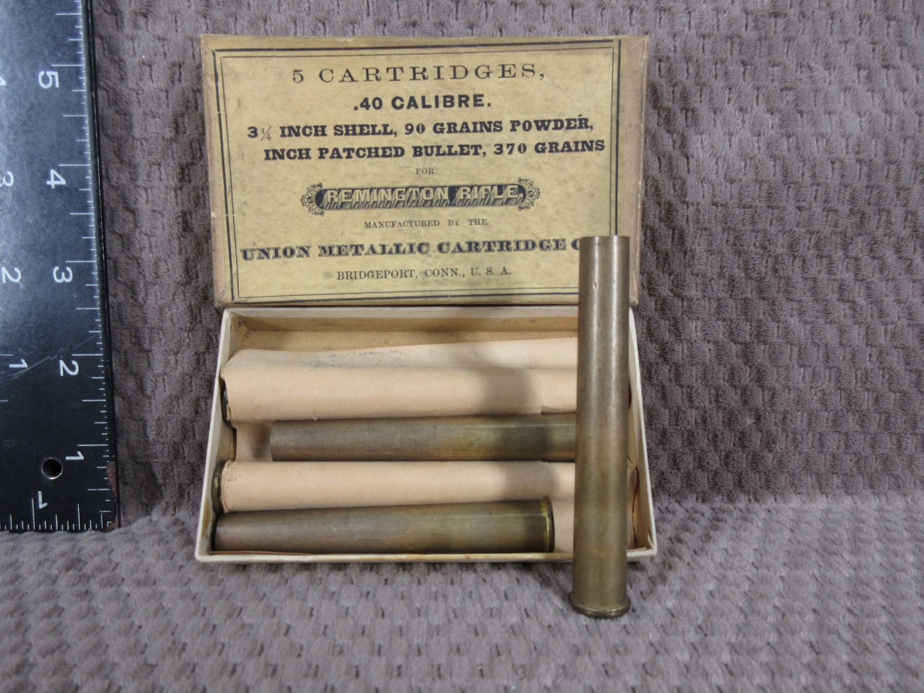 Collector Ammo - Remington Rifle 40 Calibre Union Metallic Cartridges Co. - 5 correct unprimed brass no head stamp