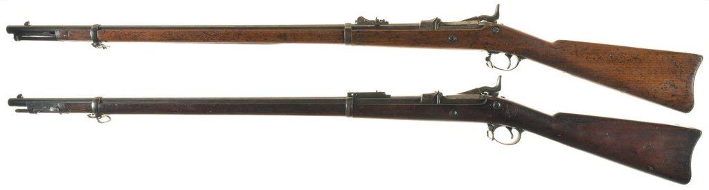 Collector's Lot of Two U.S. Springfield Trapdoor Rifles with Ramrod Bayonets -A) Rare Springfield Model 1880 Rifle