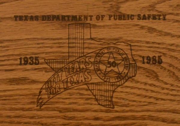 * Texas Ranger Hidebrand's Sergeants badge, Colt 1911 & boots. 1/1200. Texas DPS 150th Anniversary Pistol in wood case.