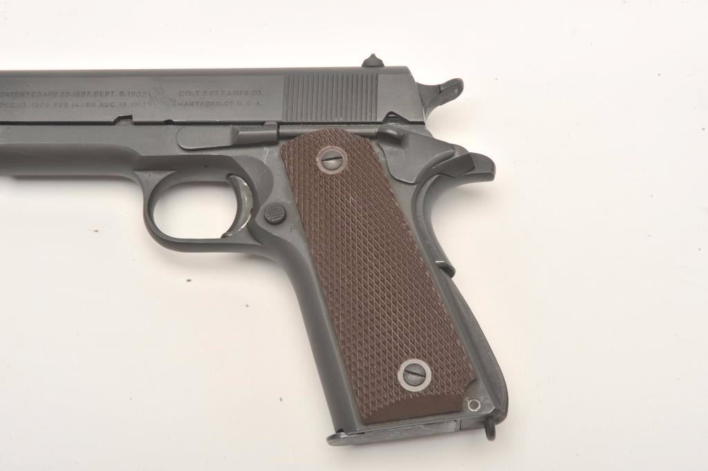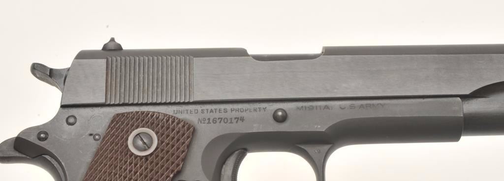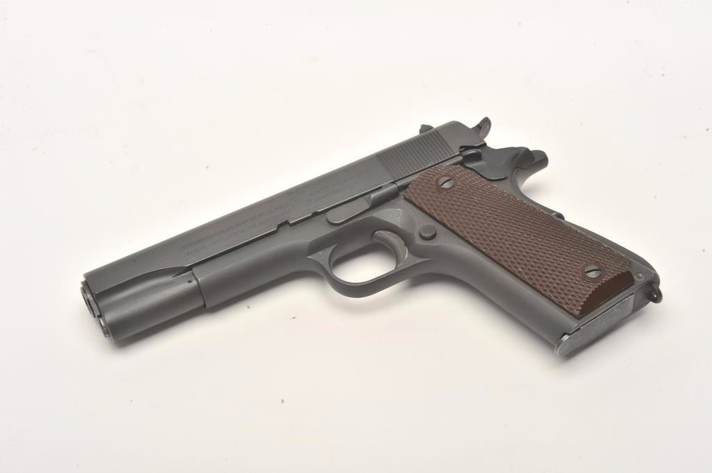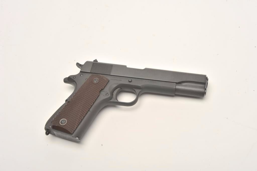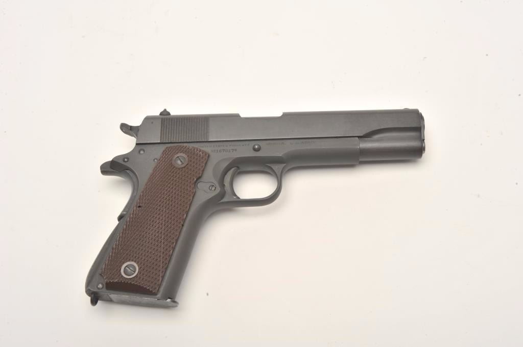Colt 1911 A1 U.S. Army semi-auto pistol, .45 caliber, Serial #1670174. The pistol is in excellent overall condition with a 5” barrel. The pistol retains nearly all of its parkerized military finish with only slighthigh point edge wear noted. The checkered plastic grips are in excellent condition as well with only light handling marks. The bore is excellent, the markings are sharp and the action is crisp. The pistol is US Armyand US property marked. An outstanding World War II era 1911 manufactured in 1944 and showing little, if any use. The lot includes one correct magazine. From the estate of Larry Gaertner. Est.: $2,500-$5,000.(C+R)